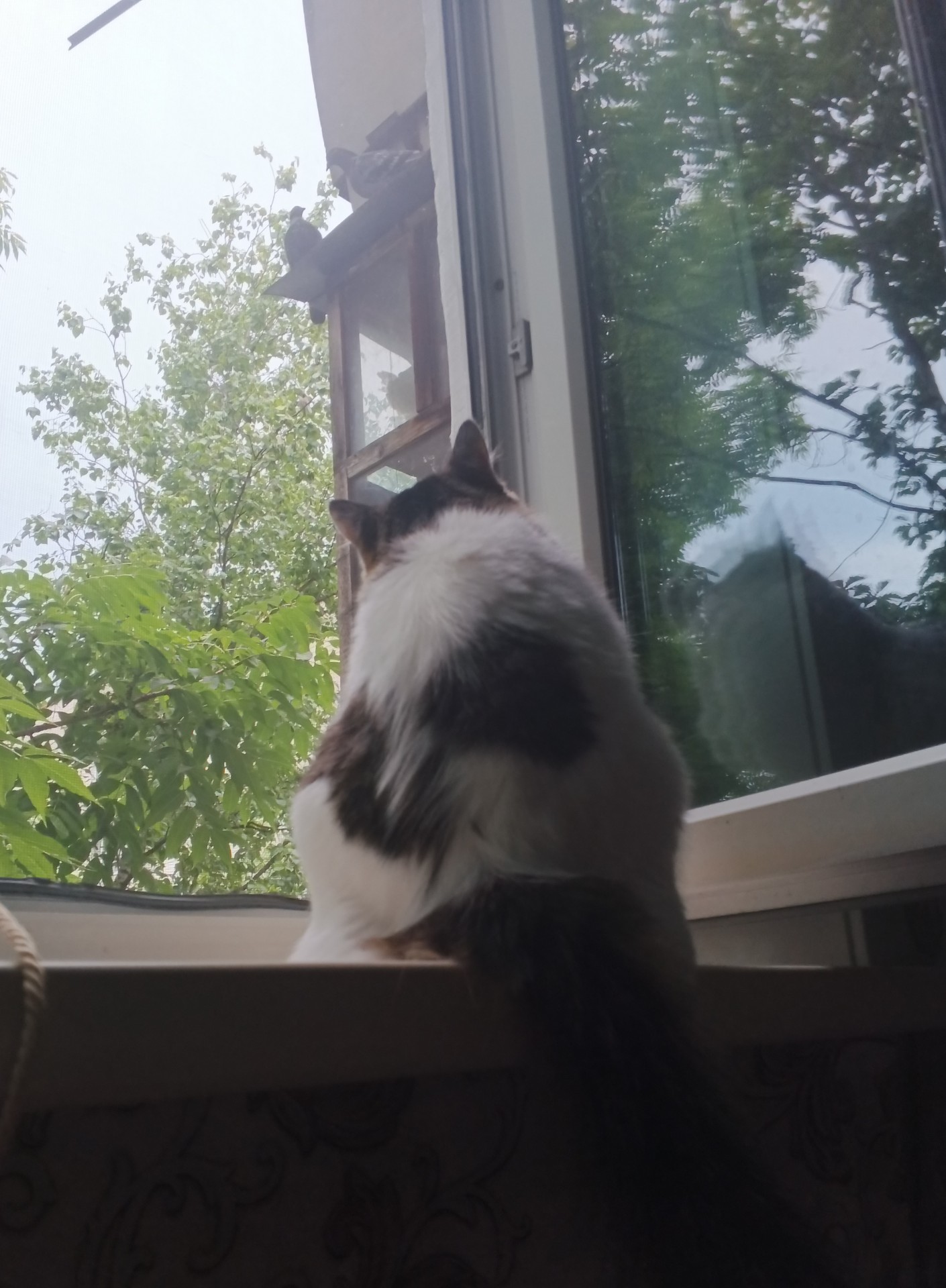 Мой Семён сейчас голубей на соседском балконе караулит. Если бы не сетка на окне, то давно бы до прыгнул :))