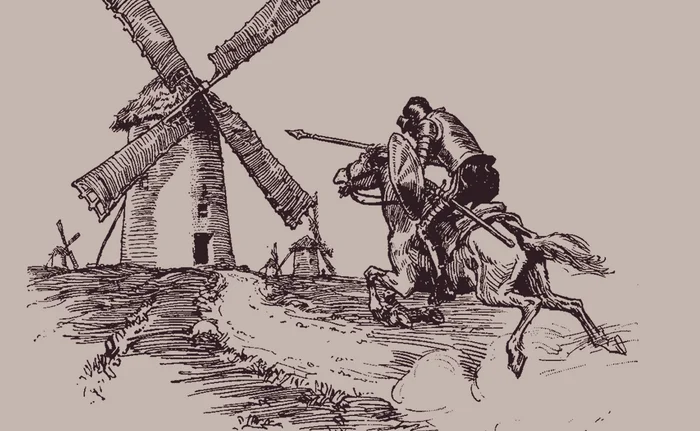 А самым известным борцом с прогресаом и со всем новым был Дон-Кихот, сражающихся с ветряными мельницами