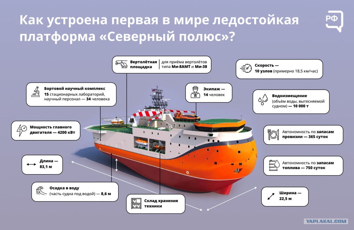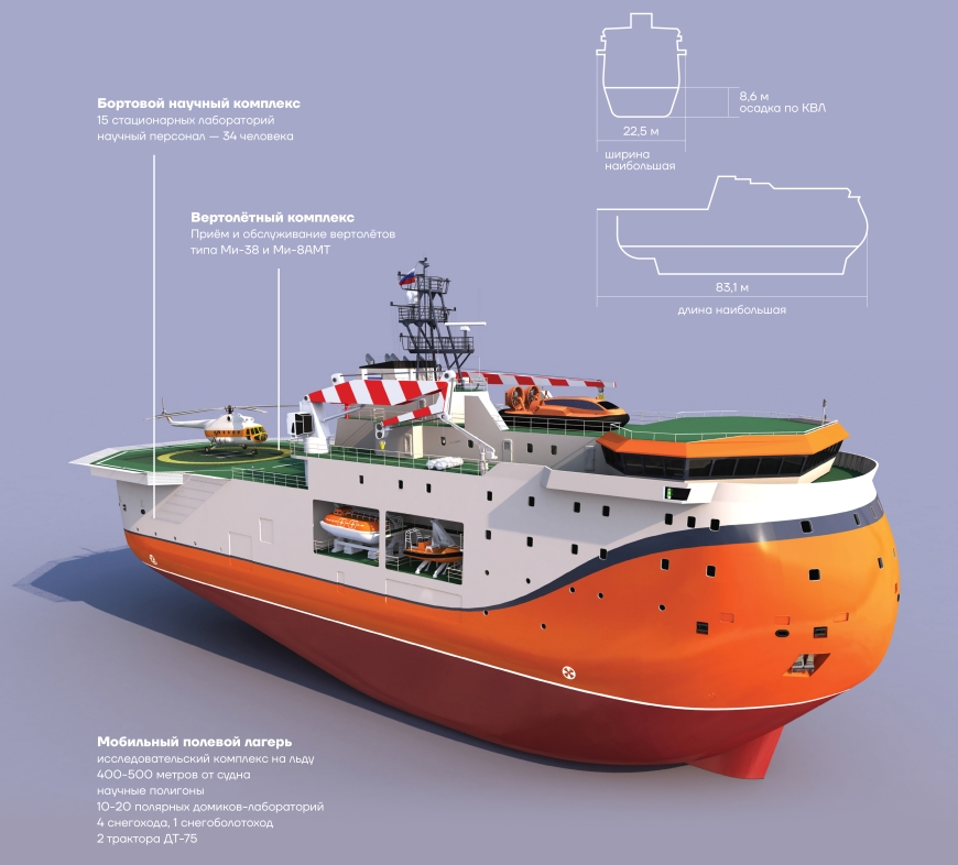 Судно может два года не заходить в порт и выдерживает давление льда толщиной до полутора метров!