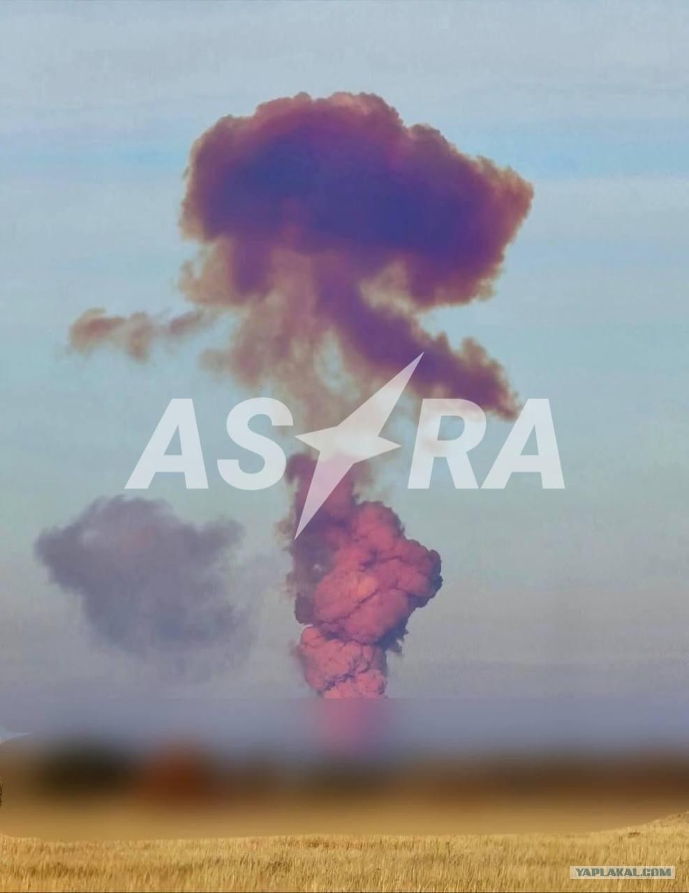 В Оренбургской области, в городе Ясный, где расположена пусковая база с таким же названием, появилось облако фиолетового дыма. Перед этим произошел взрыв.