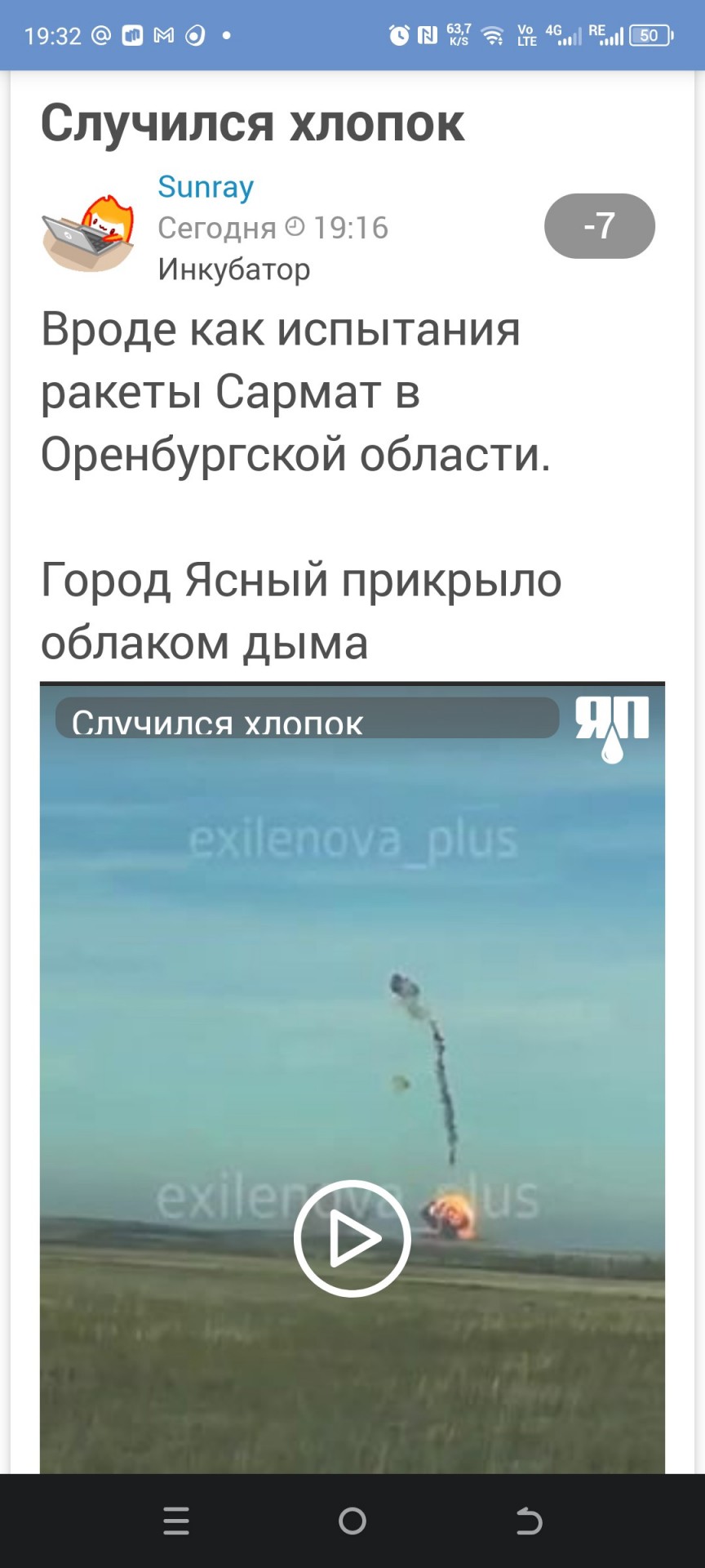 Последний запуск "Сармата" закончился взрывом прямо в шахте, и теперь его испытания видимо перенесли на "космодром" Ясное. Это не помогло и ракета на "гептиле", имеющем токсичное и мутагенное действие, взорвалась после старта.