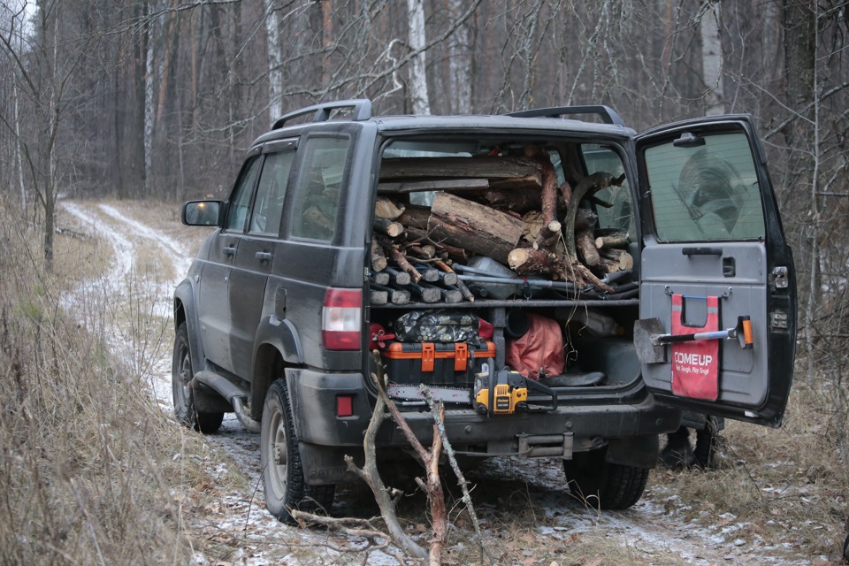 А как выглядит уазик дров? Почему уазик? Лесовозами без колки не принято?
