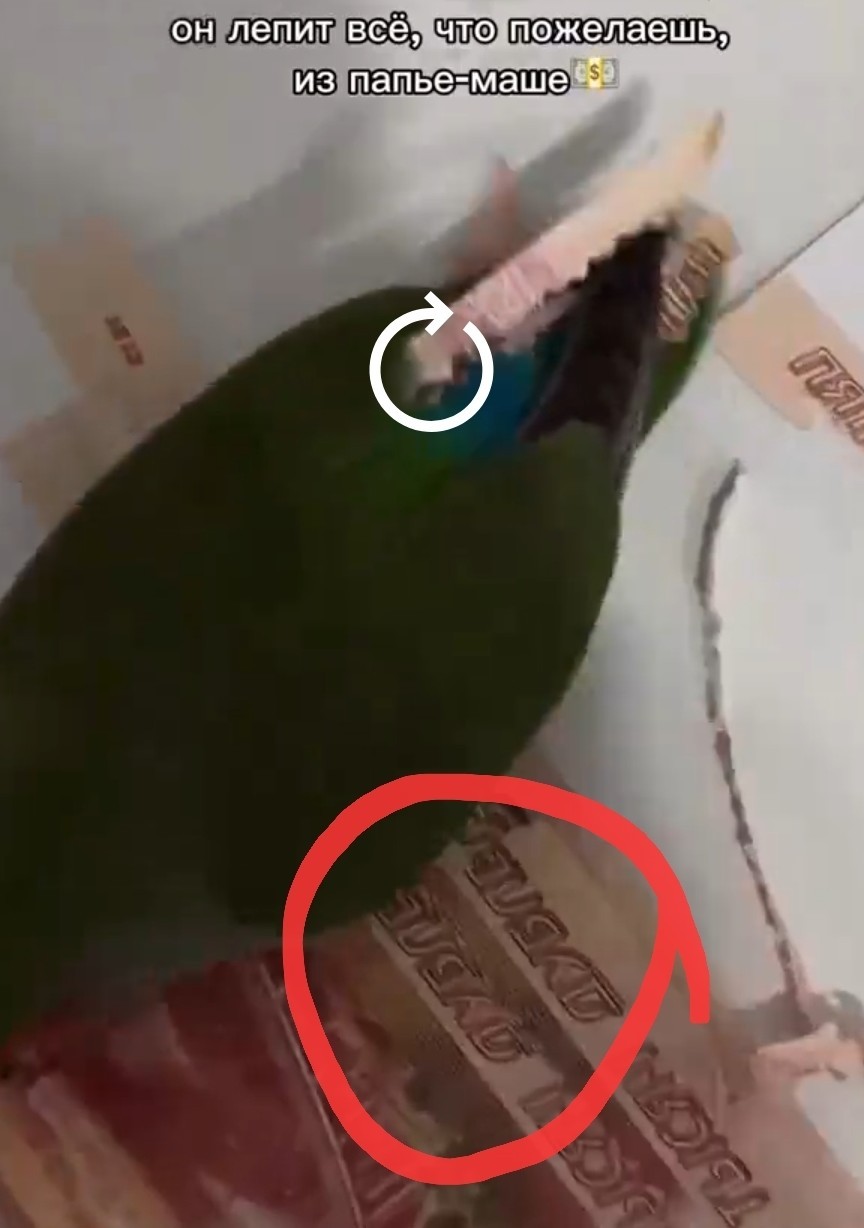 Перья из пятитысячных купюр сделал себе попугай — его хозяева просто оставили наличку на комоде