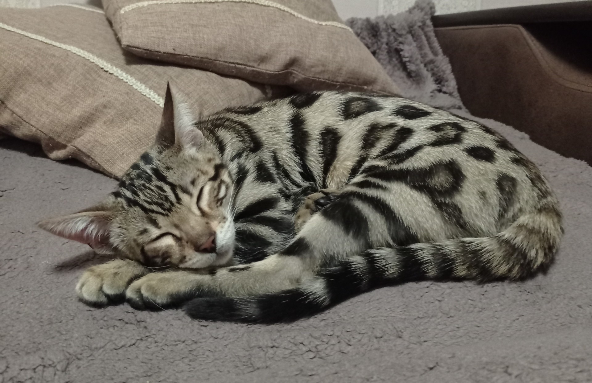 Здесь Персик играл с моей рукой, кусая её, и уснул. Так что это они умеют