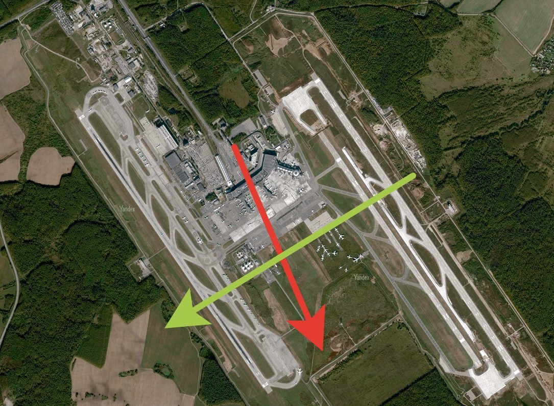 Но скорее всего это монтаж... не должно самолет быть видно так с этой точки... Взгляд идет почти параллельно ВПП, а тут как будто он летит перпендикулярно им. Вот этот экран https://yandex.ru/maps/-/CPGIyY84 Получается смотрим по красной стрелке, а самолет летит по зеленой.