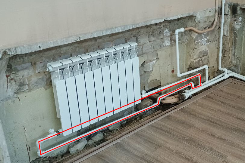 Байпас (перемычка): Для эффективной работы и возможности регулировки или отключения отдельного радиатора без остановки всей системы, параллельно каждому радиатору устанавливается байпас (участок трубы меньшего диаметра).