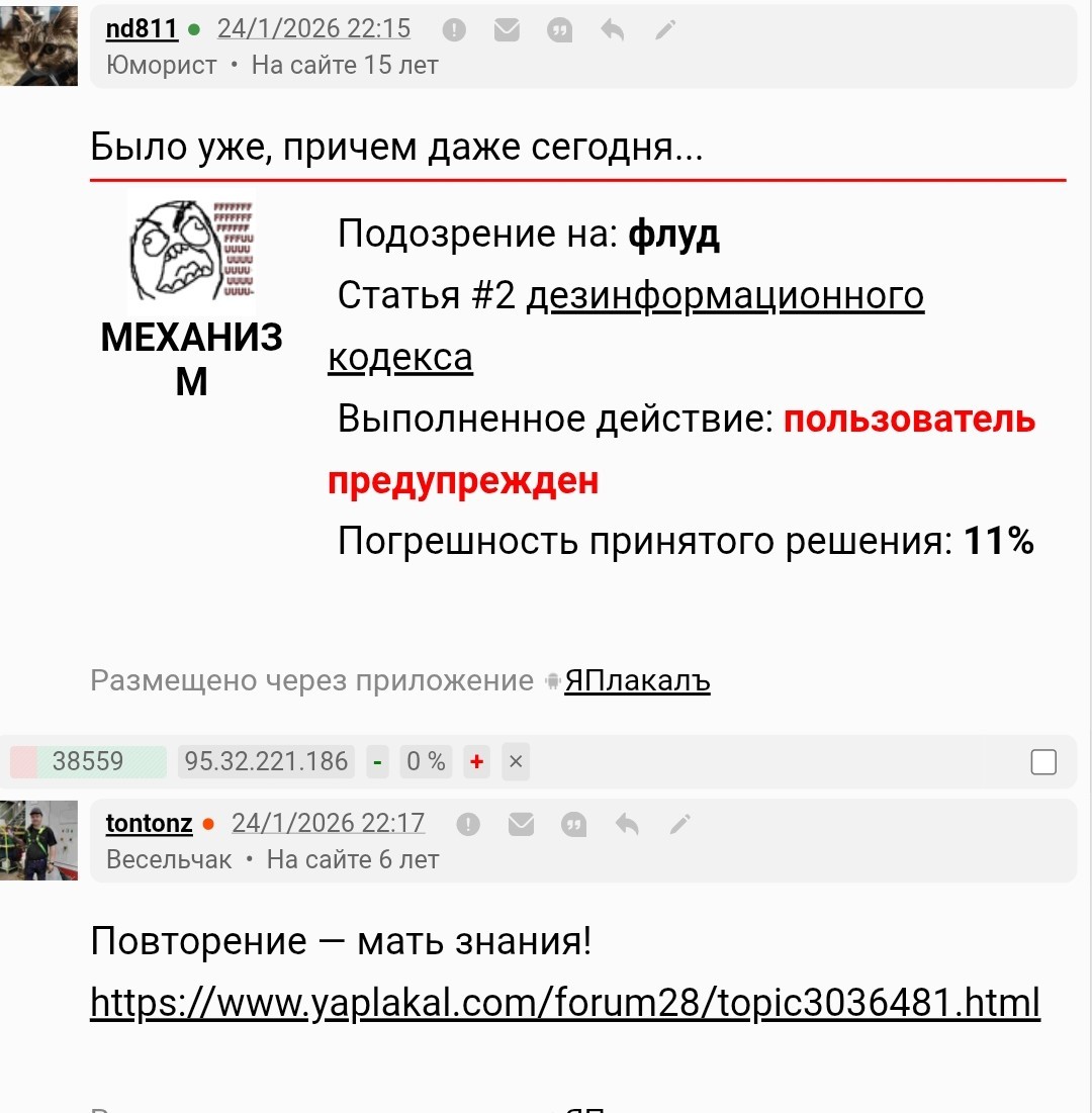 Влепят предупреждение, как здрасьте! И похуй, что после твоего сообщения твои слова подтверждает другой человек, приложив ссылку на ранее опубликованный контент ...