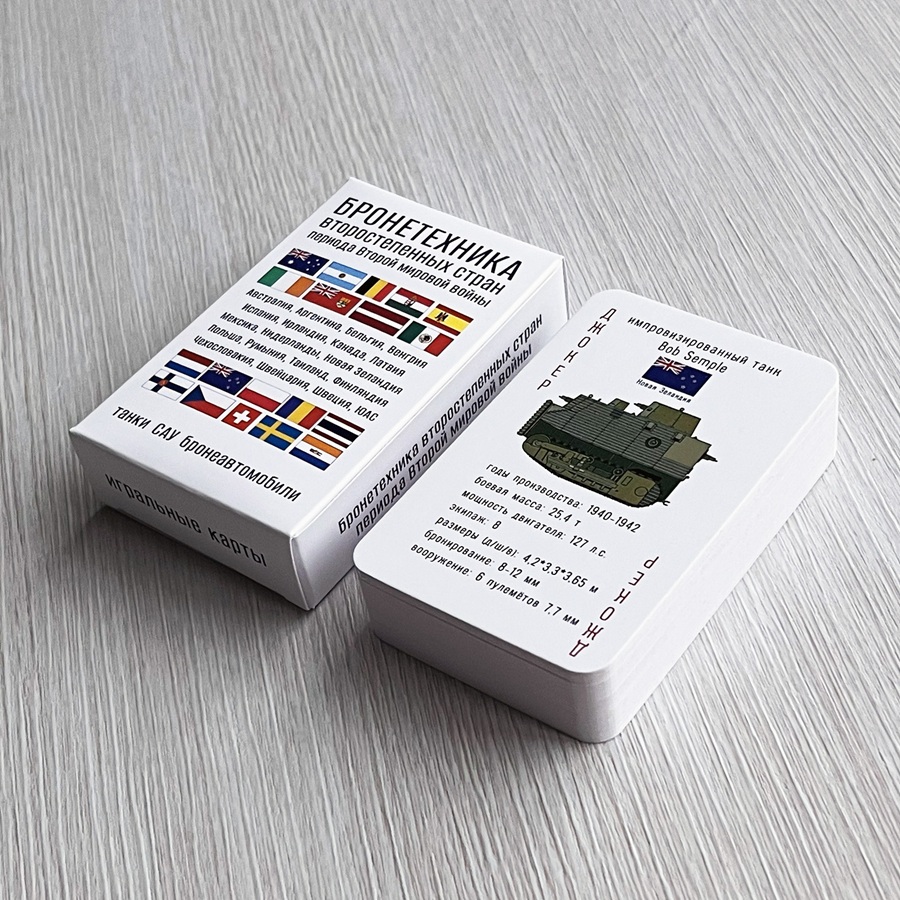 26 октября 2021 года был готов первый тираж моей первой авторской колоды - "Бронетехника СССР периода Второй мировой войны". С тех пор выпущено 18 колод, одна из них, правда, репринт - воссозданная колода 1943 года (она была напечатана ещё весной 2021 года, однако её доработка и некоторые изменения были внесены через 2 года)