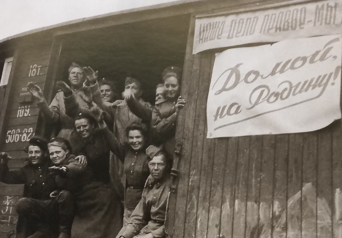 Понятно что эта картина создана современным художником используя фото 40-х годов. Фото вагона с плакатом можно посмотреть ниже.