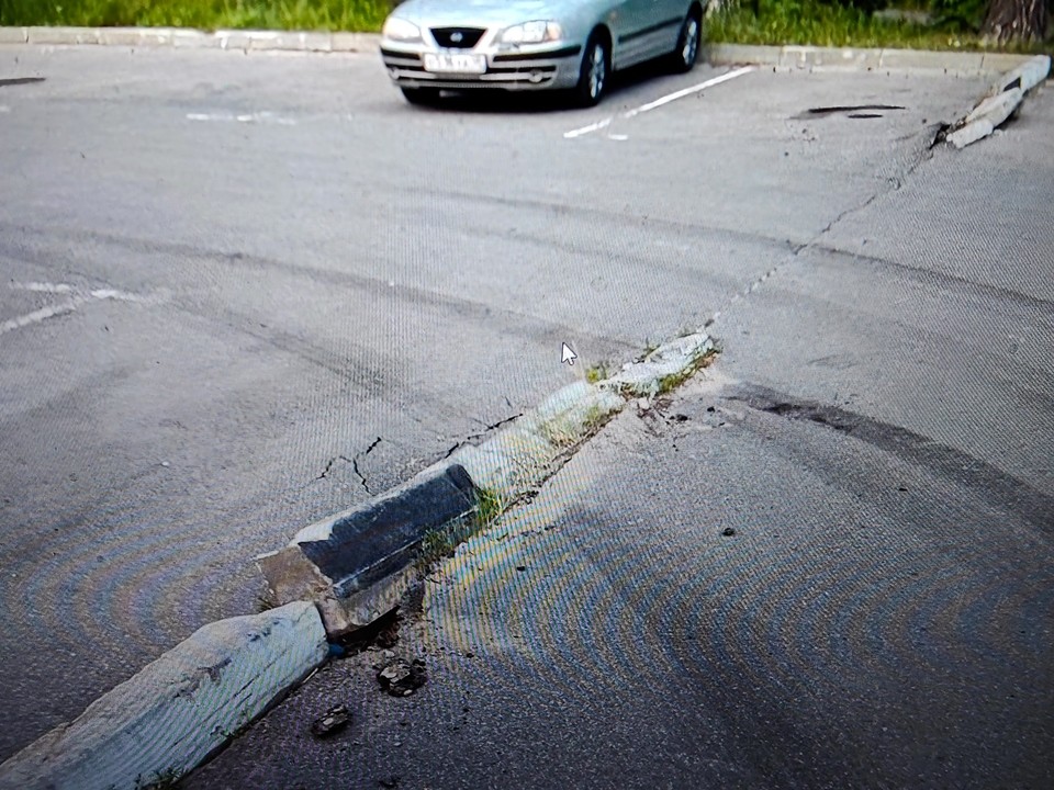 махина вырвала куски асфальта, искрошила бордюры и едва не добавила в свой “топ разрушений” пару легковушек.