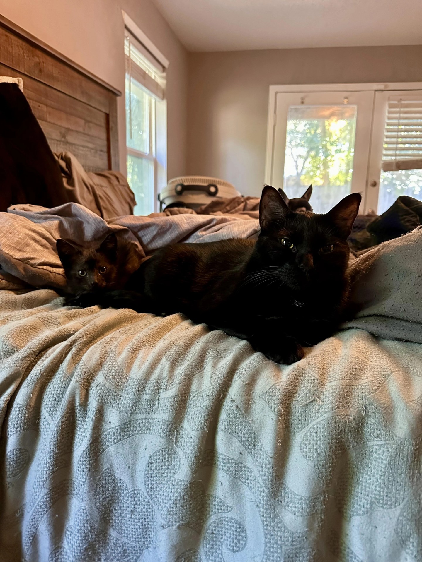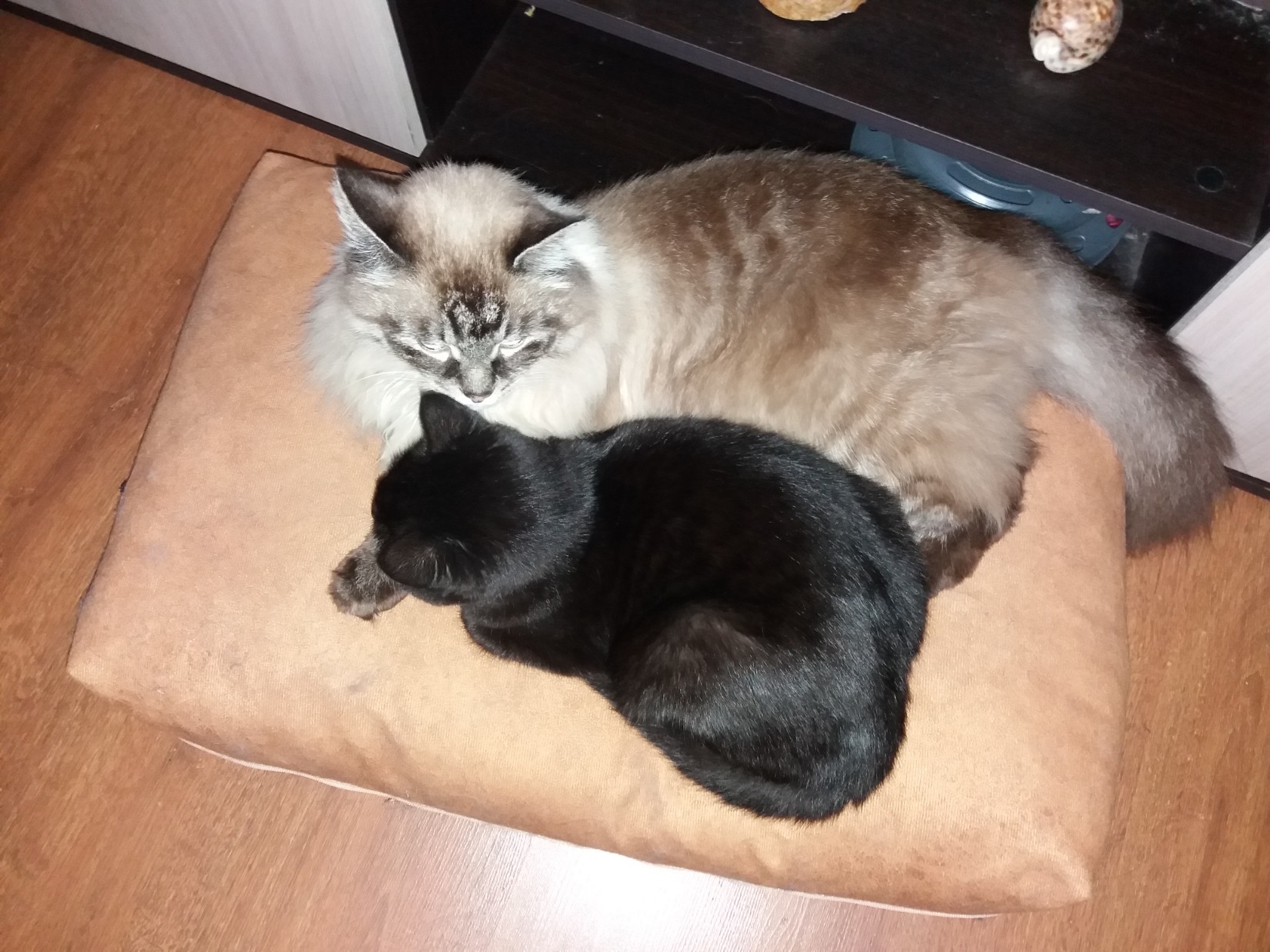 Туслис (Toothless, рус. Беззубик) учит своего нового младшего братика, как быть пушистым чернильным пятном. Теперь у меня есть две мурчалофабрики, которые хотят спать прижавшись ко мне в кровати.