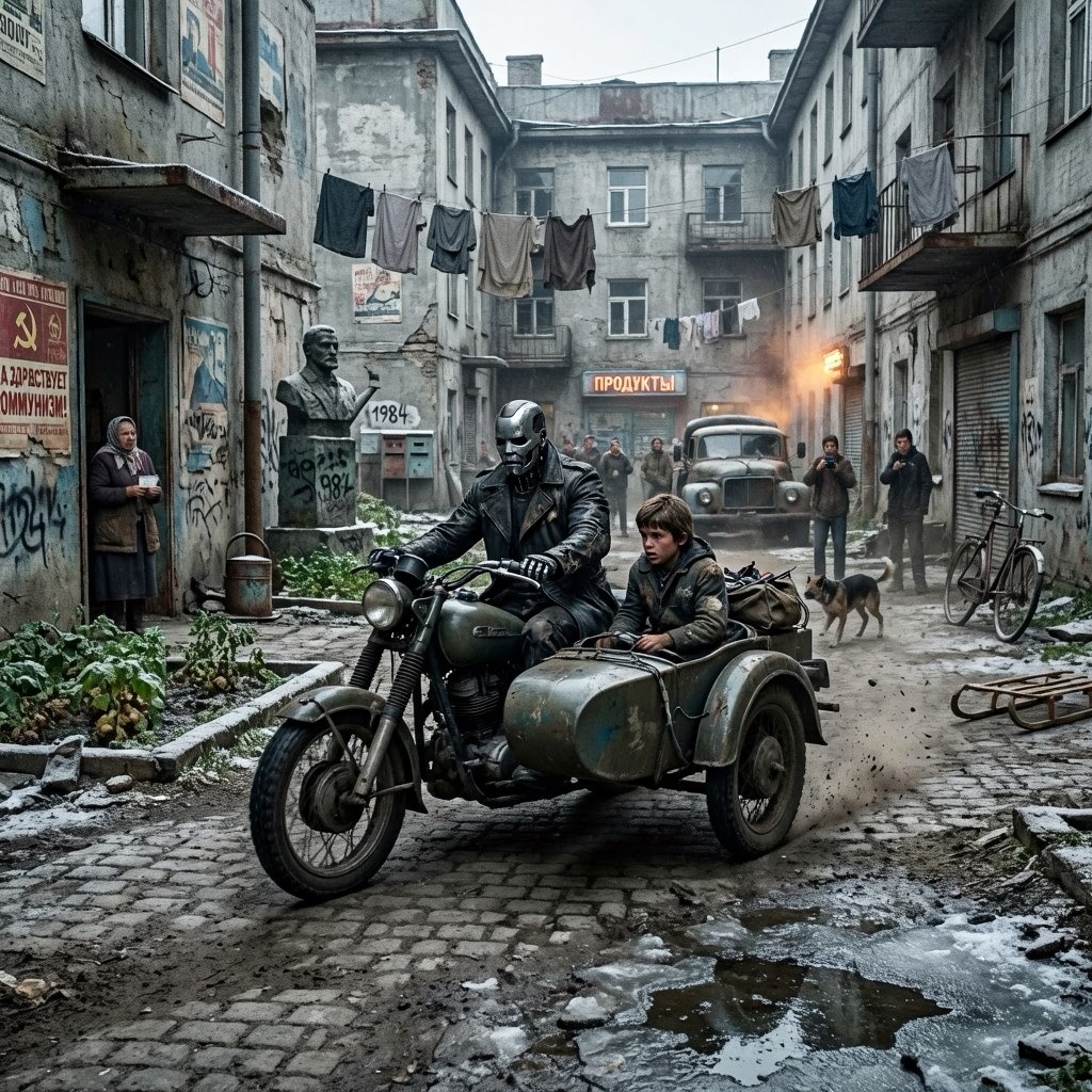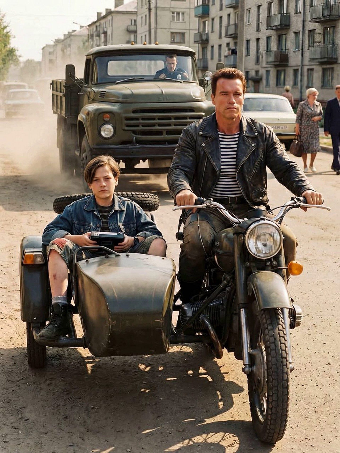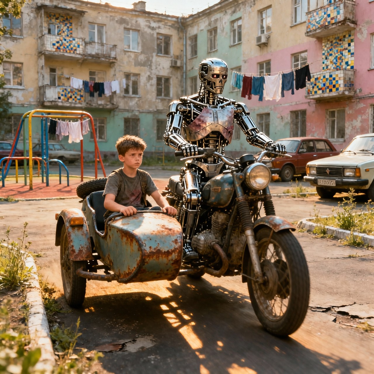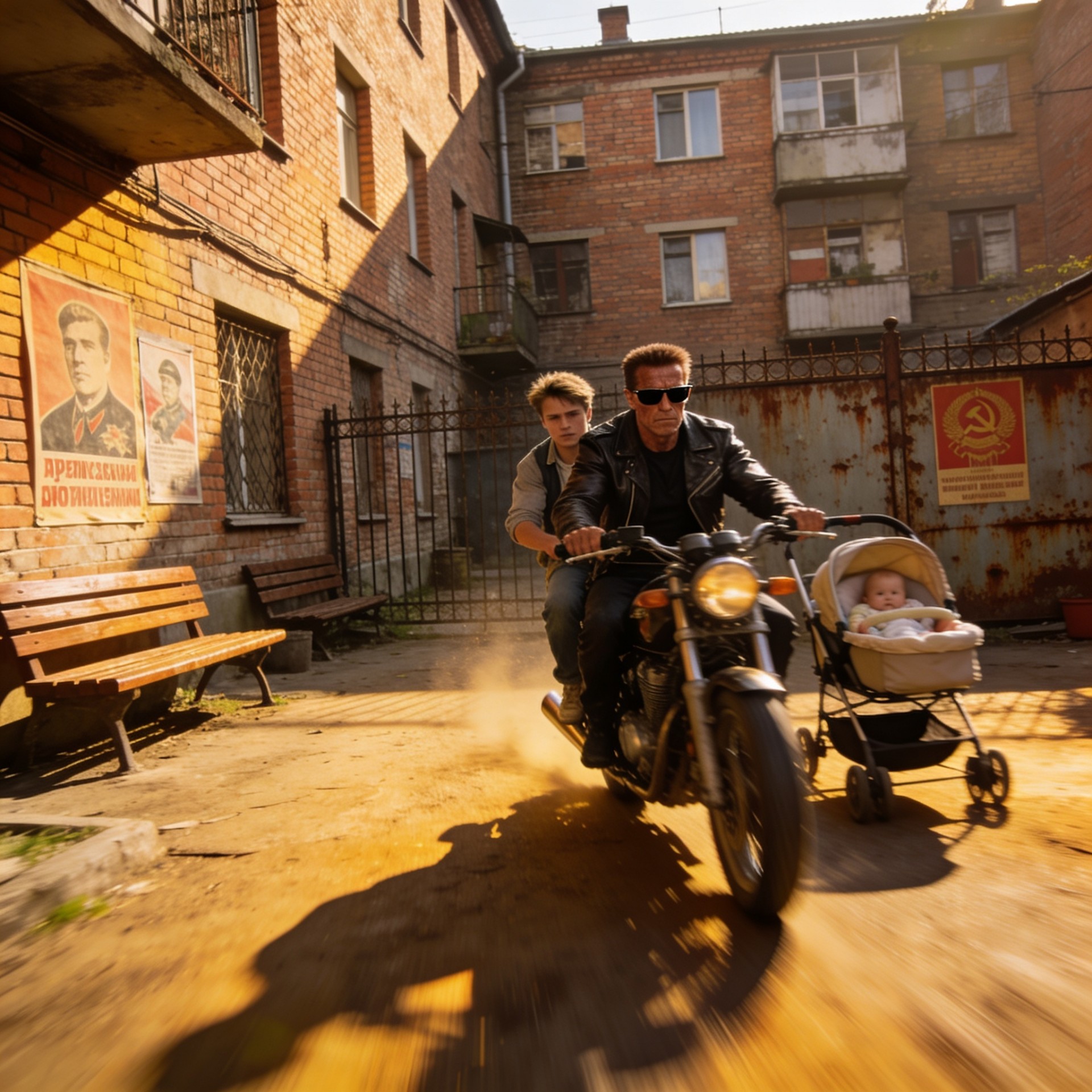 Форумчане,на просторах форума примерно месяца 3-6 назад видел картинку,как Терминатор Т-800 вместе с Джоном Коннором едут на мотоцикле с люлькой по обычному двору СССР. Эта картинка ИИ,очень мне запала,но найти ее никак не могу. Может есть кто тоже ее видел,буду очень признателен