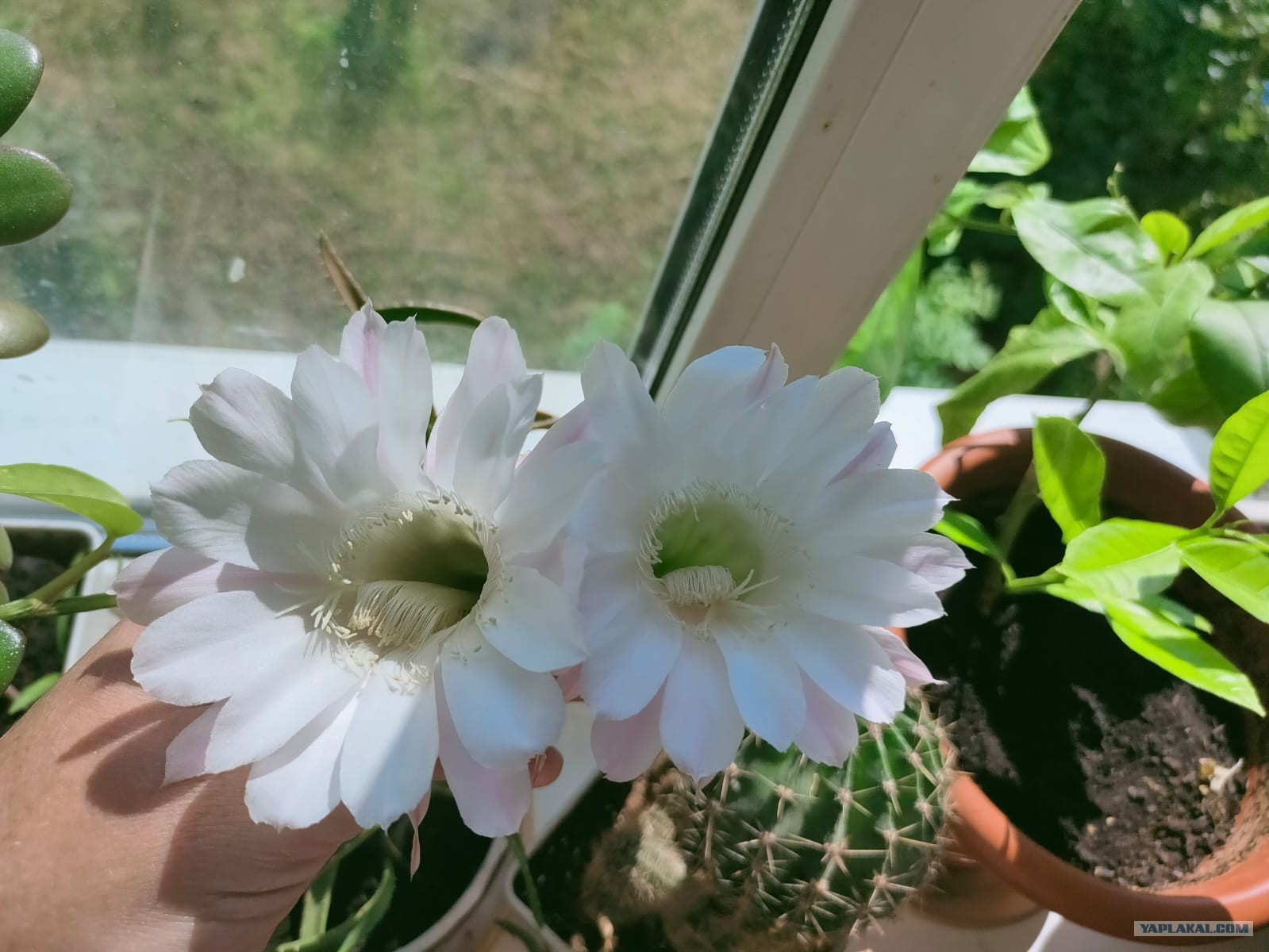 Сколько было кактусов, ни разу не цвели. Последний остался, а ему уж 20 лет. Но реально никогда не цвел. Правда поливаю когда вспомню... Раз в пол года. А вымахал с человечью голову размером.