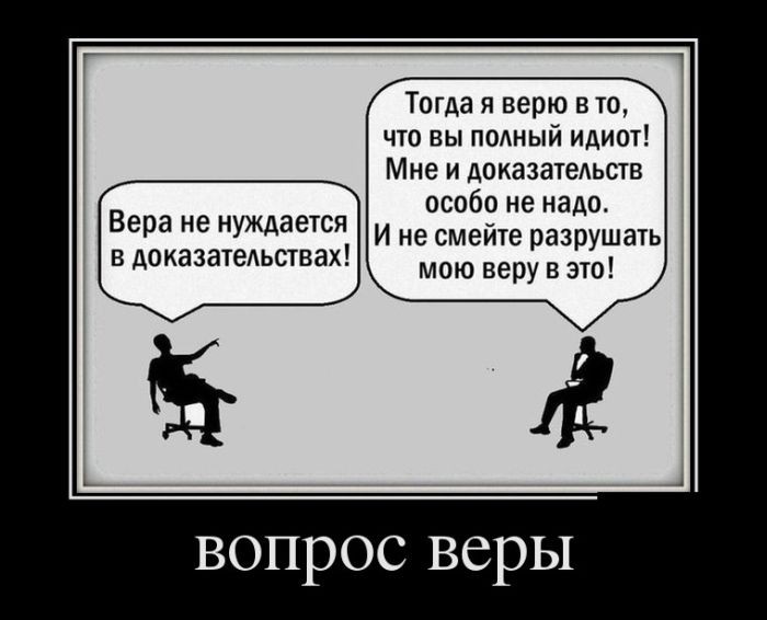 а вера в доказательствах не нуждается. ну кто в здравом уме будет спрашивать доказательства у сумасшедших.