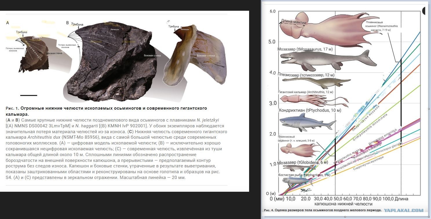 У чуваков есть клювы нынешних восьминогов и они нашли огромные клювы вымерших.Можно и сопоставить.Так же по мегалодону-гигантской акуле было,когда сначала зубы нашли в разы больше чем у белой.А строение то акулы известно.