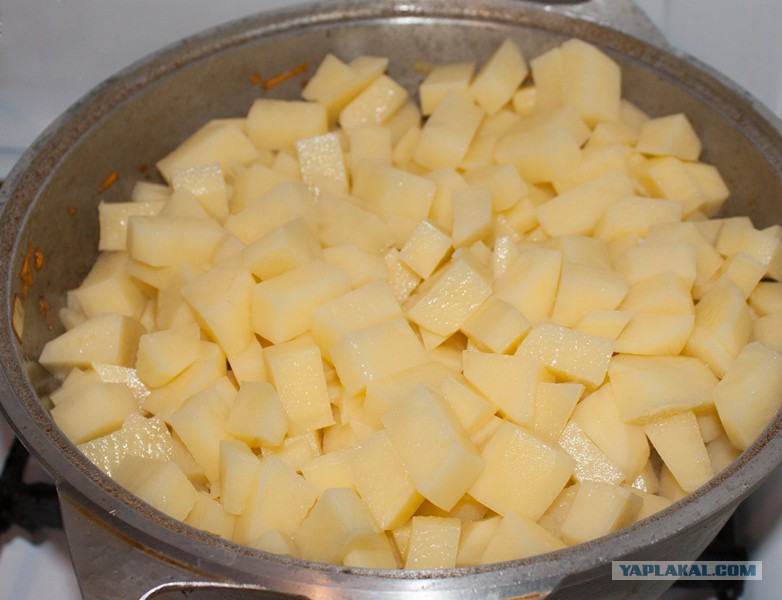 Заливаем нашу картошку, доливаем воды до уровня, перемешиваем