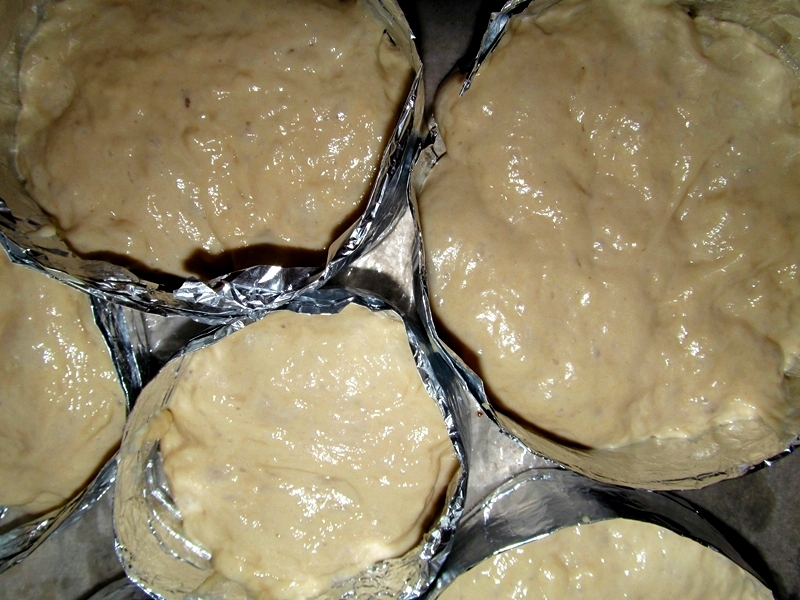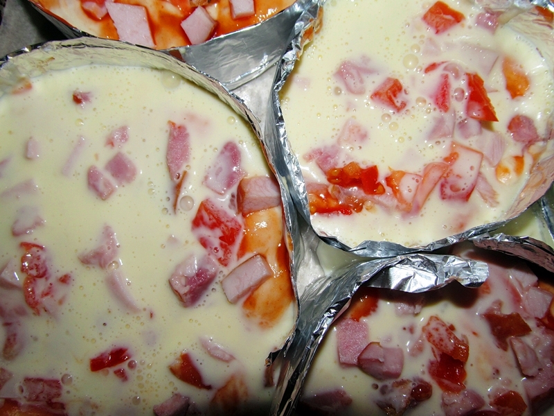 Формы для теста. Тут началось самое интересное, т.к. форм таких у меня и близко нет, была скручена фольга с высокими бортиками (хотя в некоторых местах смаженки просто кладут на противень эдакими лепешками), туда отправлено тесто.
