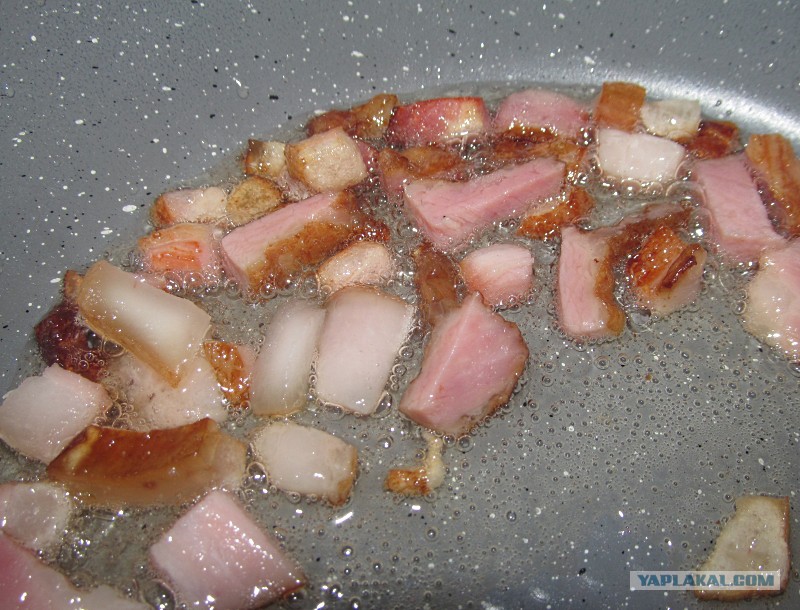 Берем копченое сало, вытапливаем жир, никуда потом не забираем, оно же пойдет в зажарку. Да, никто не обещал, что будет постно и диетически. Будет ВКУСНО.