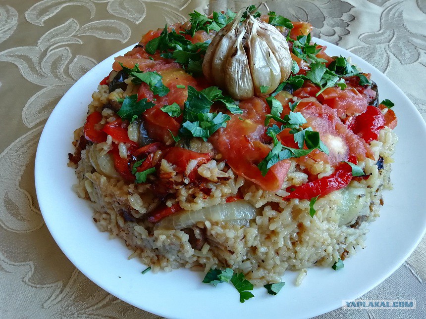 6. Маклюбе в переводе с арабского - "перевернуто", и называется так, потому что готовое блюдо подаётся перевернутым на большую тарелку, овощами сверху.