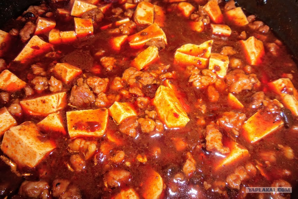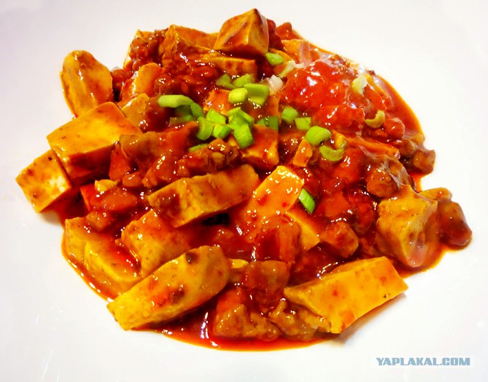 Или Мапо Тофу для Ярослава belator. Это простое и сытное блюдо из китайской провинции Сычуань. Оно огненно-острое, как, впрочем, и большинство блюд этой кухни, но тофу придаёт ему некую шелковистость и снижает градус остроты до относительно приемлемого. Как сами жители описывают его – оно ошеломляющее, острое, горячее, свежее, нежное и мягкое, ароматное и тающее во рту.