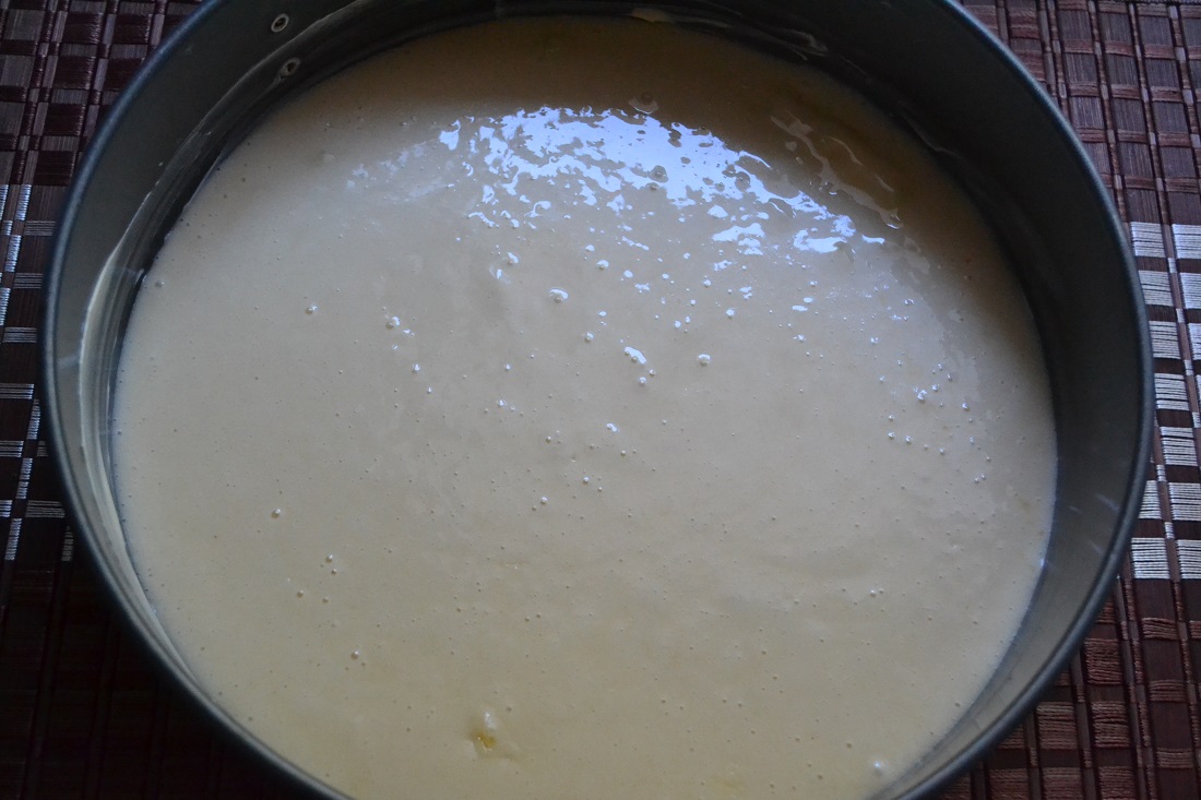 8. Переливаем тесто из чаши в форму и ставим выпекаться при температуре 180 градусов, периодически тыкая в корж зубочистку для проверки на готовность )))