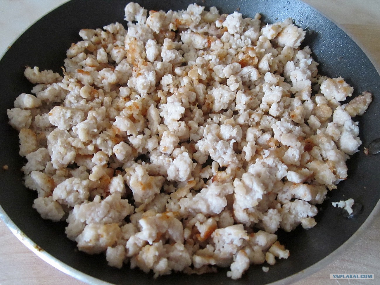 Курицу превращаем в фарш и также слегка обжариваем.