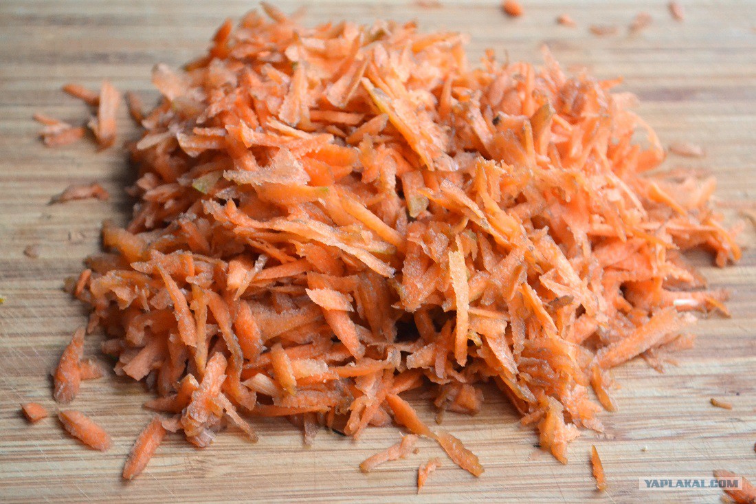 Морковь на крупной тёрке измельчаем.