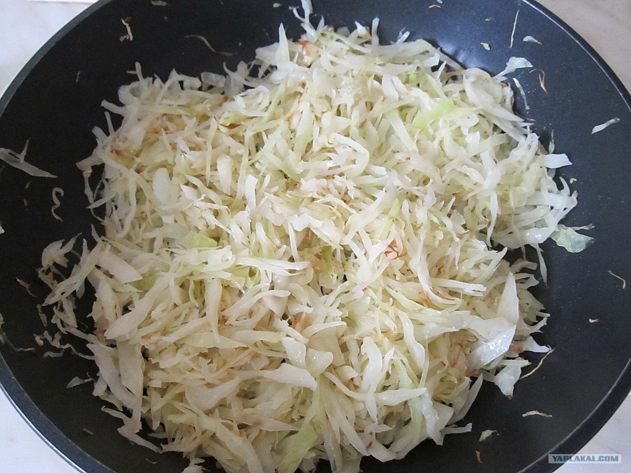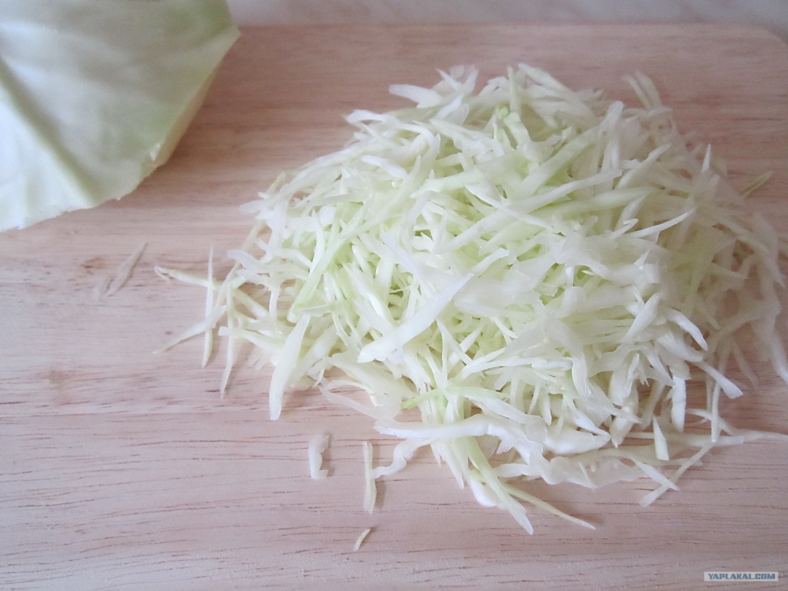 Начнём с начинки. Капусту мелко режем.
