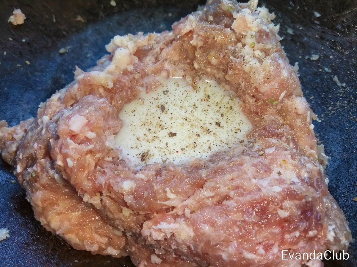 В фарше он сделал лунку и влил порядком подзамерзшее молоко и сыпанул щепотку молотого ореха