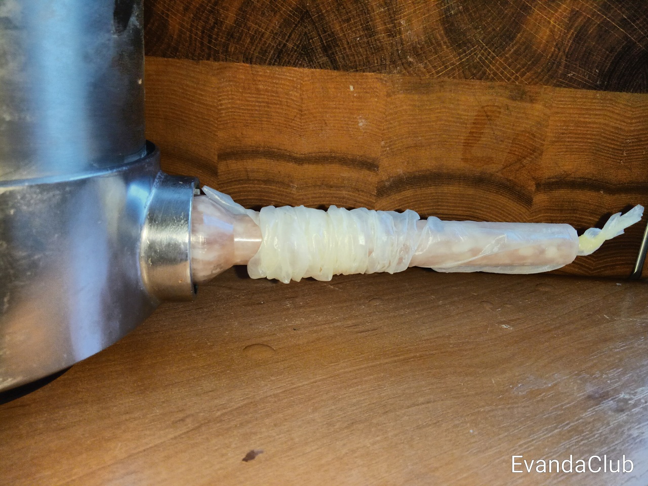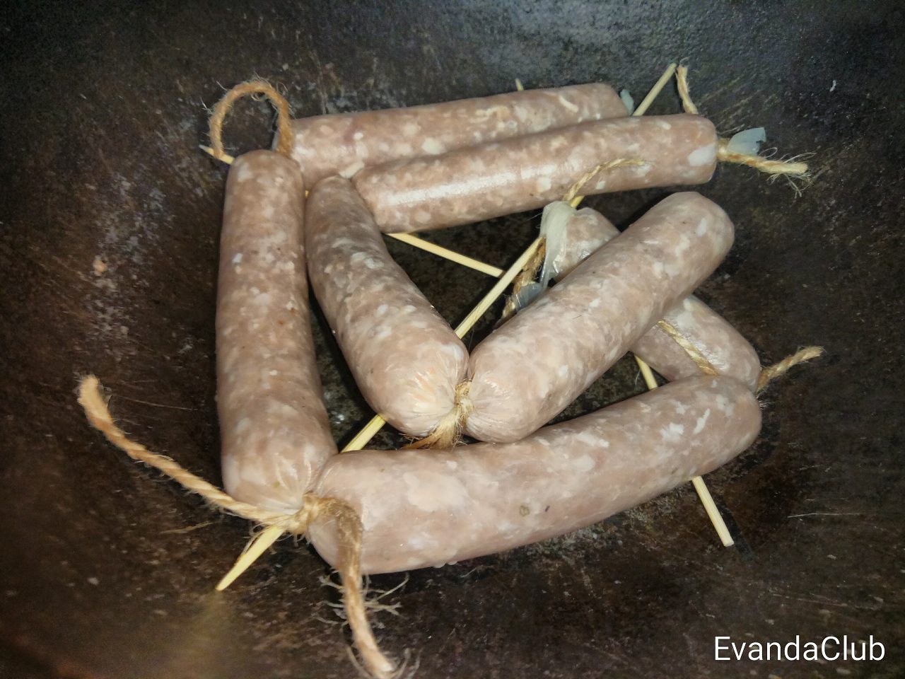Набивал и перевязывал он аккуратно, уж очень нежная была оболочка и могла порваться от малейшего усердия при нажиме на поршень шприца. Как закончил он свое колдовство, поднялся в кухню. Там уже был вымыт казан и готов кипяток для варки. Выкладывал он их аккуратно, подстилая веточки, дабы стенок сосиски не не касались.