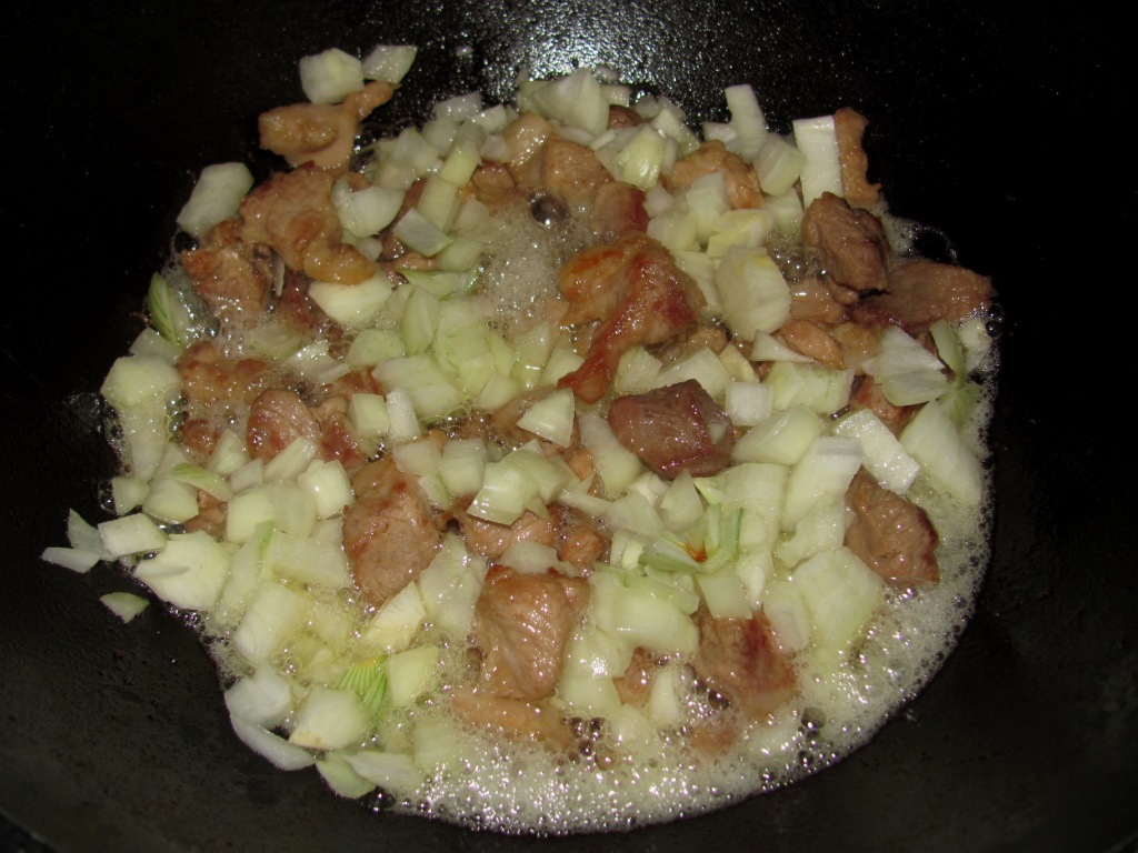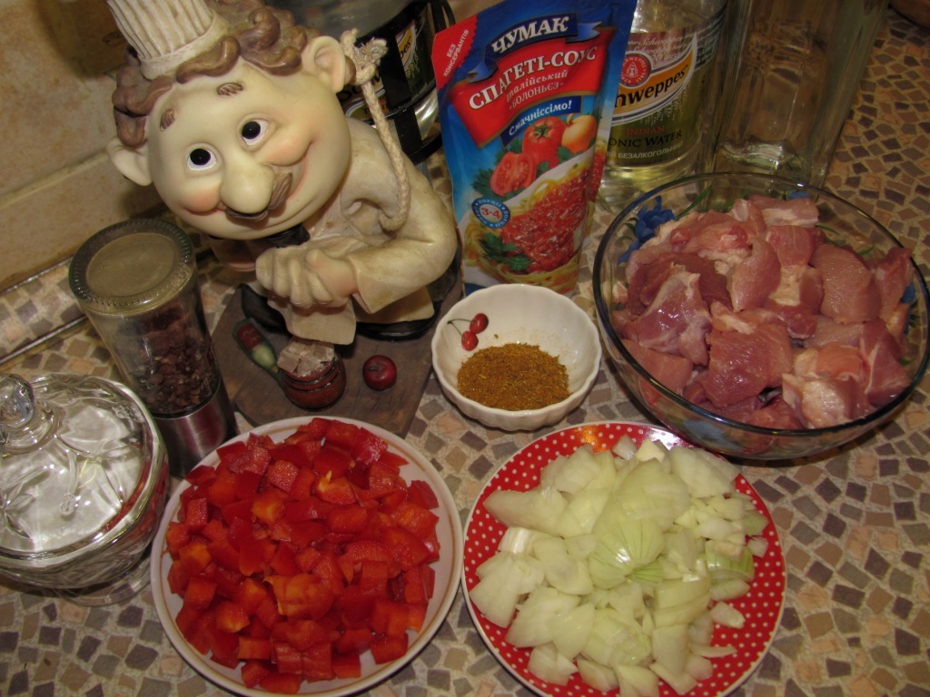 - мясо. Желательно – свинина. Варианты: курятина, телятина, прочая …ина – на ваше усмотрение. Нет разве мяса? Ну, будем считать гости к вам с мясом пришли. От такие молодцы гости, пришли и мяса с собой принесли, с полкило, примерно. Или больше – смотря какие там аппетиты у вас;