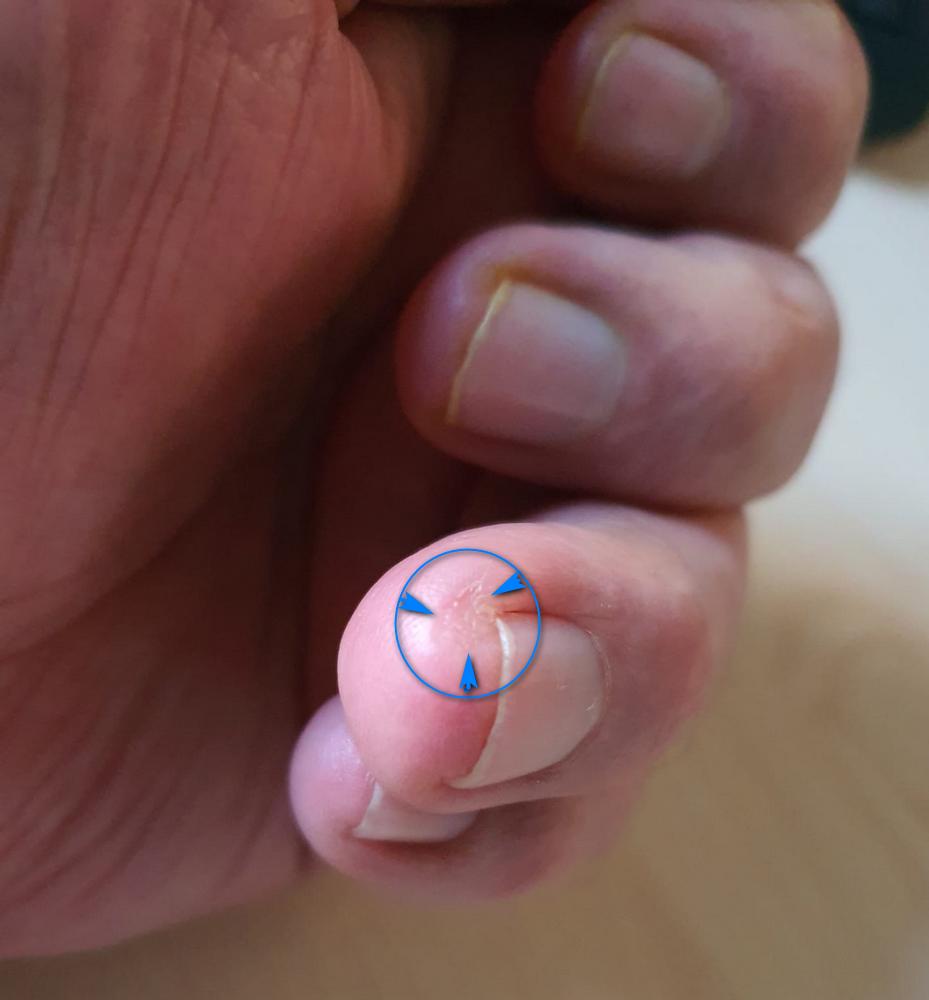 Что с пальцем было об"яснить не смогу, в общем уголок срезался напрочь как бритвой. Зажило быстро, дней за пять, но при нажатии на это место остро болит. Пройдет со временем