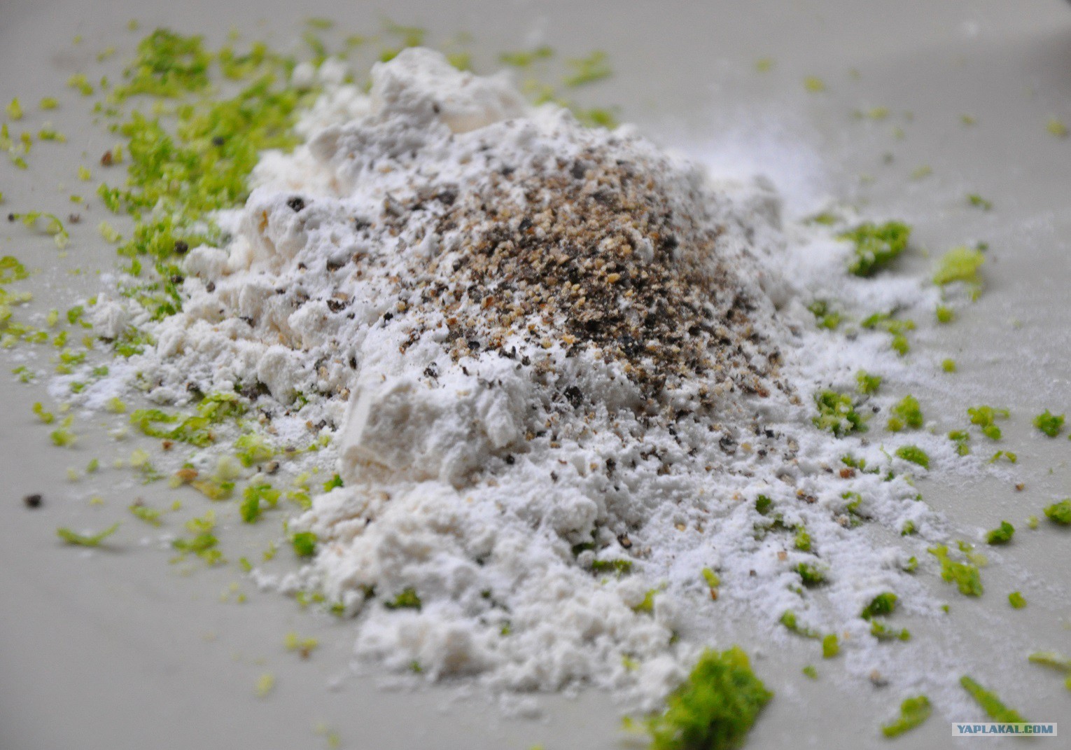 Цедру лайма смешиваем с мукой, крахмалом и перцем.