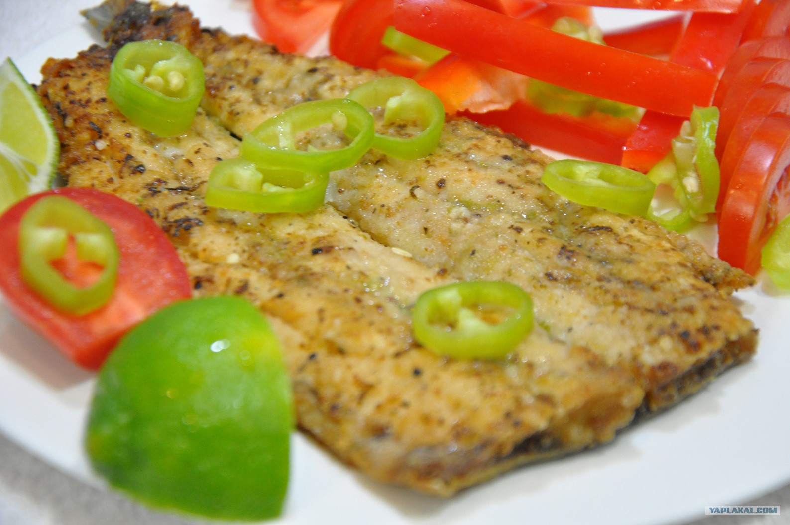 Поливаем соком лайма, подаем с чем душа пожелает. У меня свежие овощи с перцем чили. А про зелень забыл, начал пробовать и не смог остановиться, улетела в секунду.