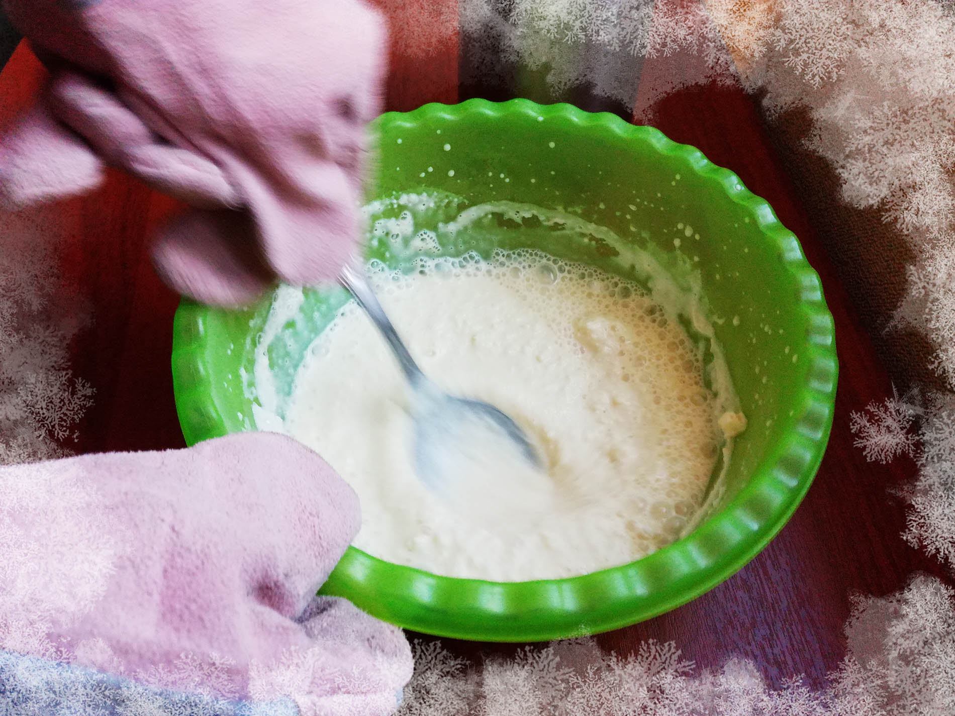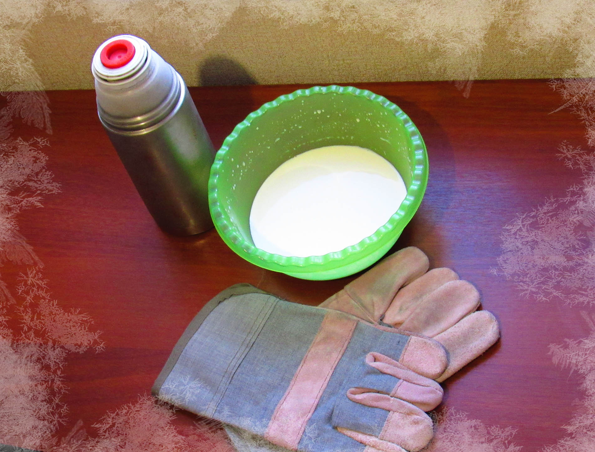 8. Сахар желательно превратить в пудру, я делал в ступке. Взбиваем смесь миксером, чтобы тщательно смешать компоненты. Готовимся к следующему этапу, криогенные перчатки, жидкий азот и смесь для будущего мороженого.