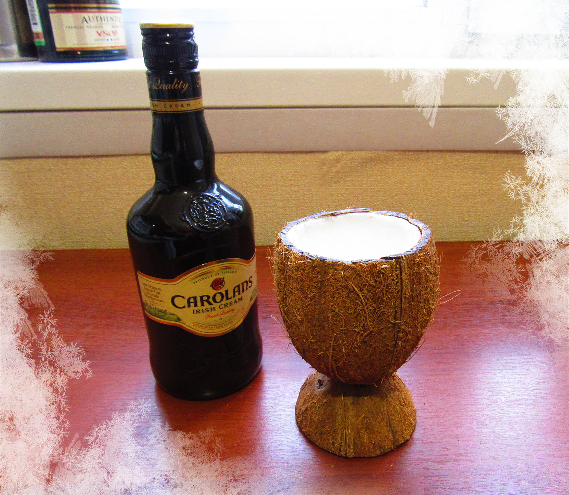 19. Вливаем 100 мл ликера в кокосовый бокал.