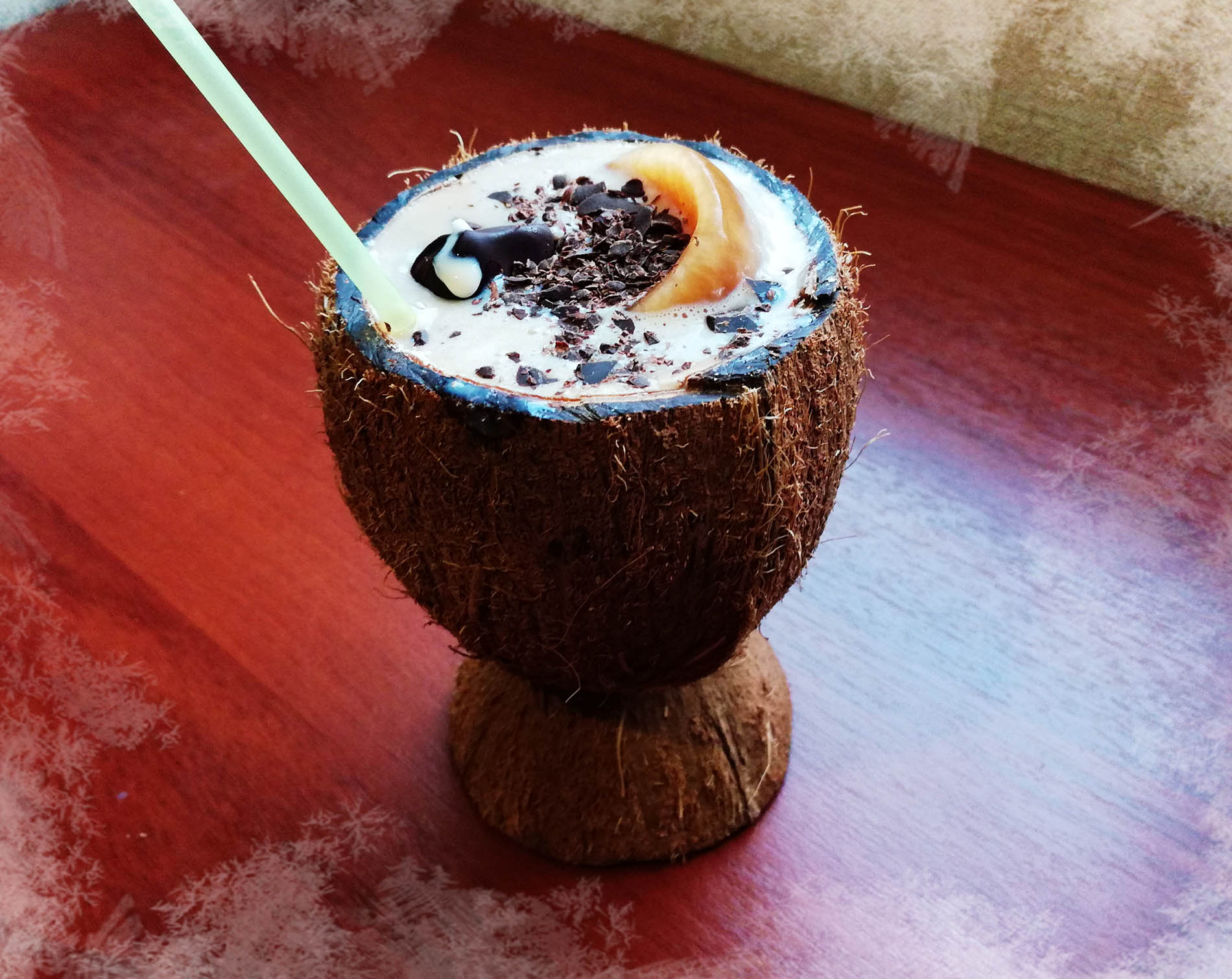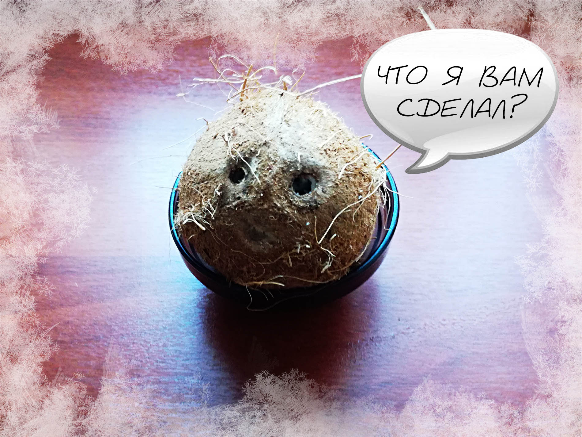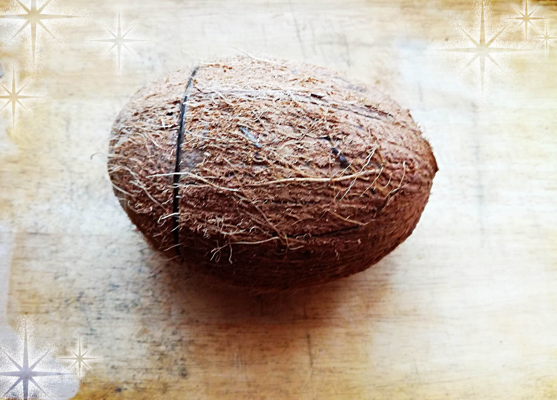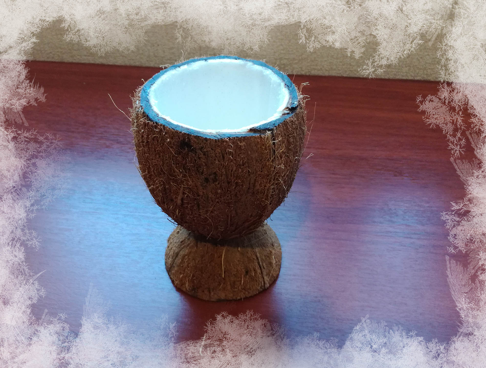 3. Делаем два отверстия в кокосе, чтобы слить молоко. Ну и для придания ему упоротого вида.