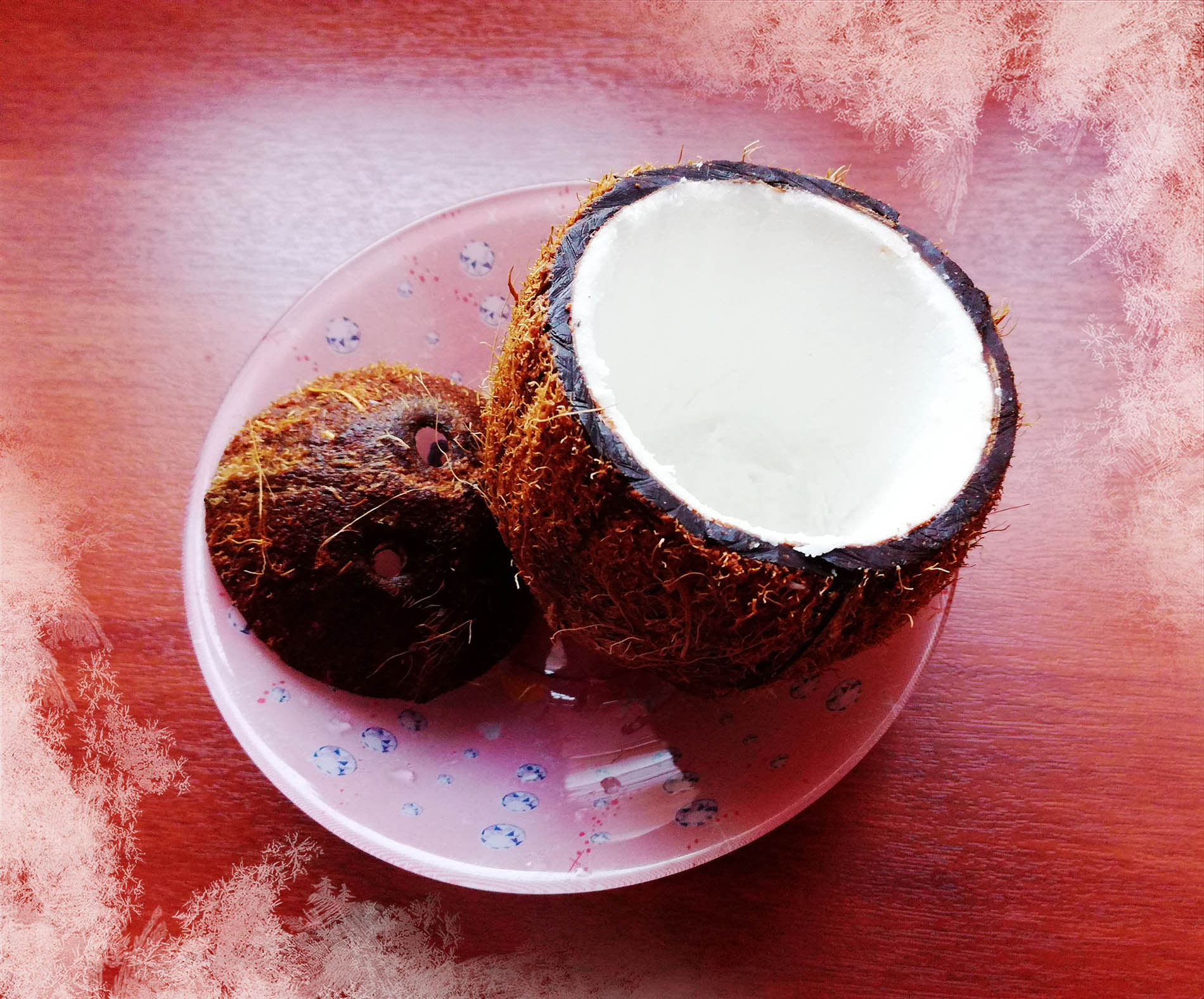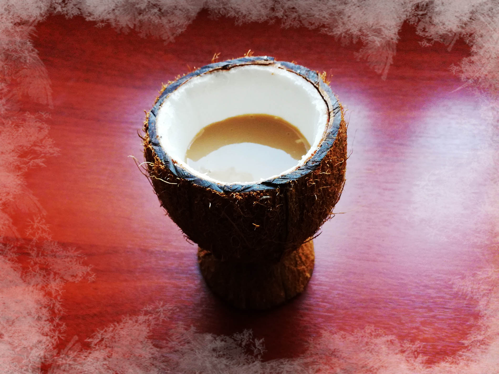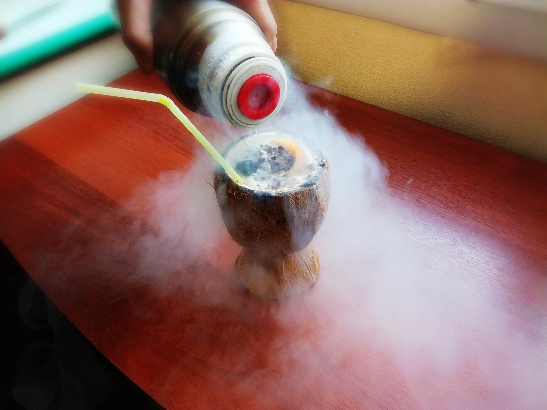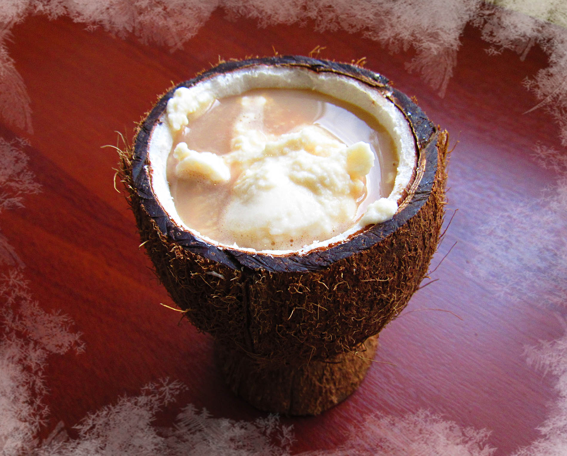 3. Делаем два отверстия в кокосе, чтобы слить молоко. Ну и для придания ему упоротого вида.