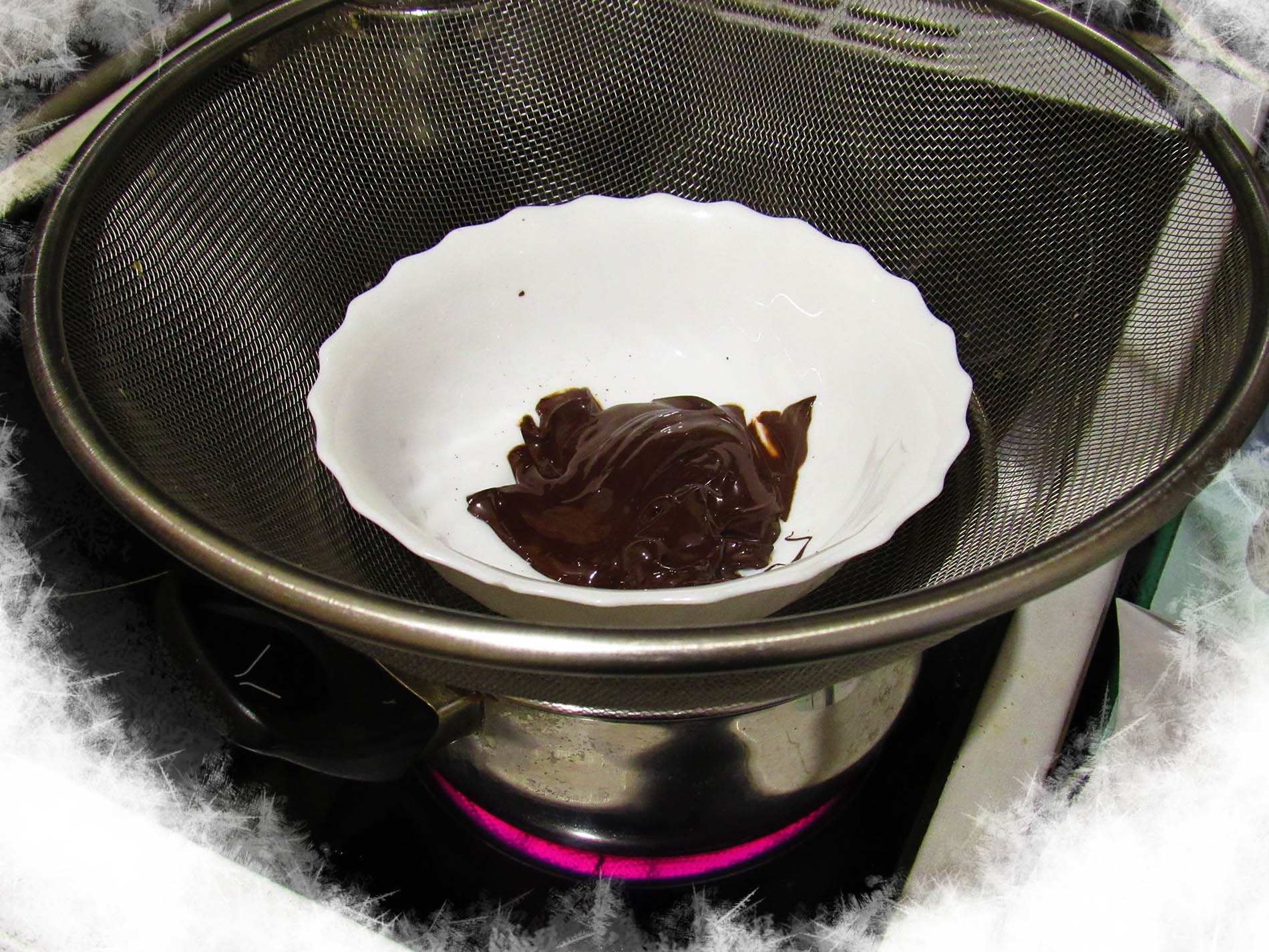 13. Дольки шоколада доводим до жидкого состояния в «паровой бане».