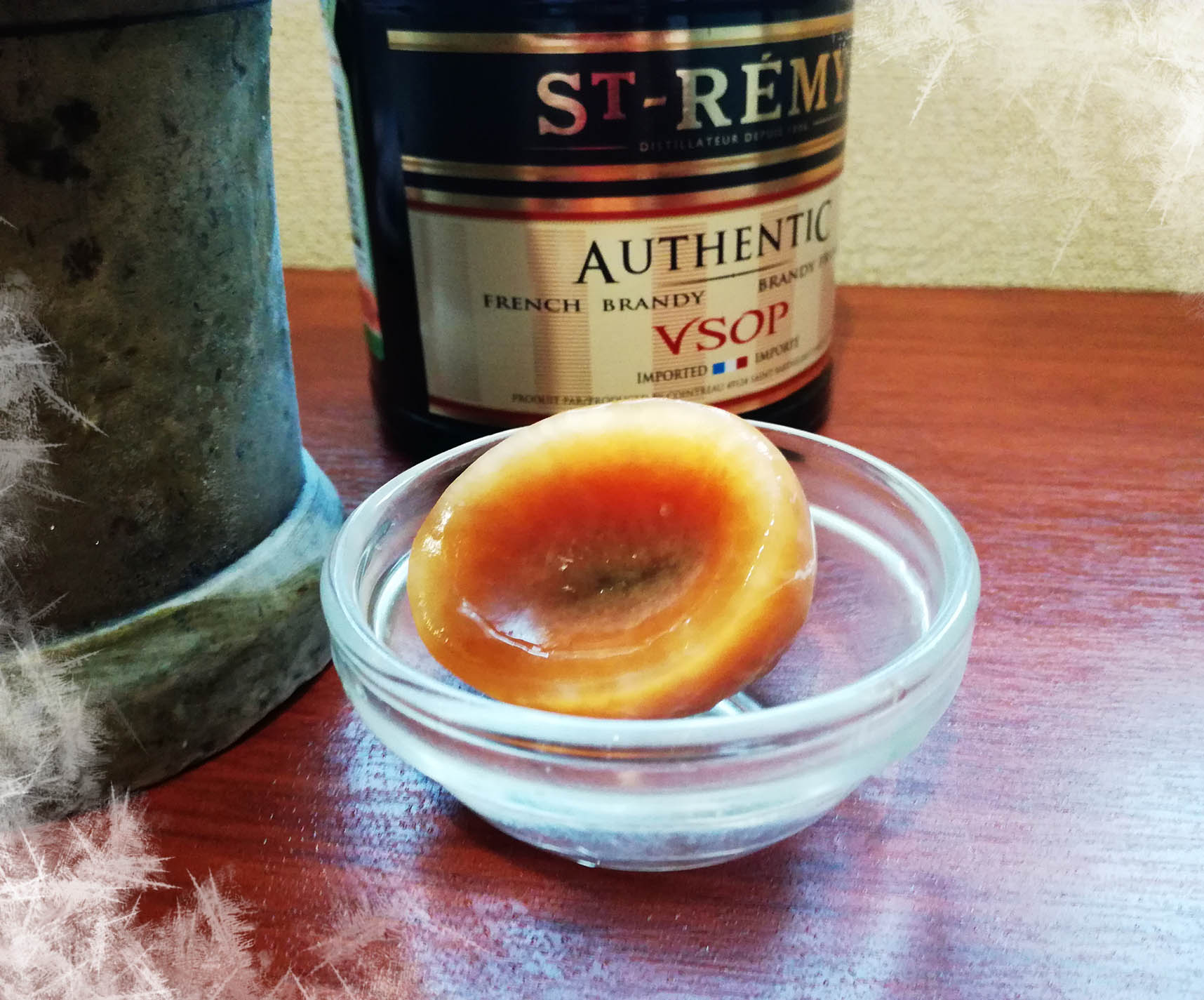 17. Аккуратно разрезаем шарик и вынимаем содержимое, получился вот такой абрикос алкогольный.