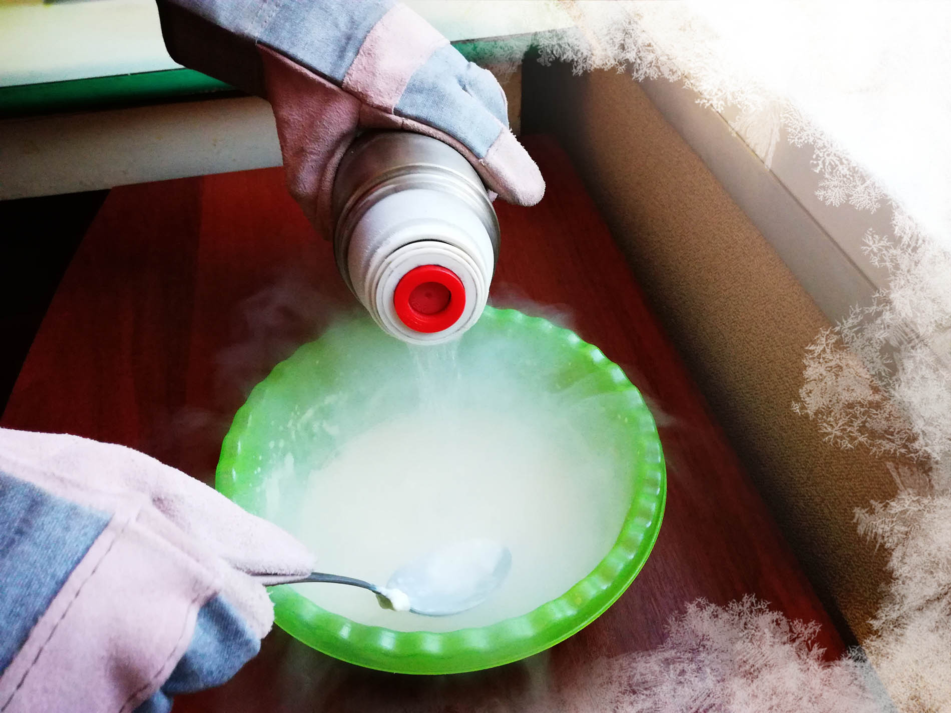 16. Окунаем шарик с бренди в кипящий азот до полного замерзания бренди.