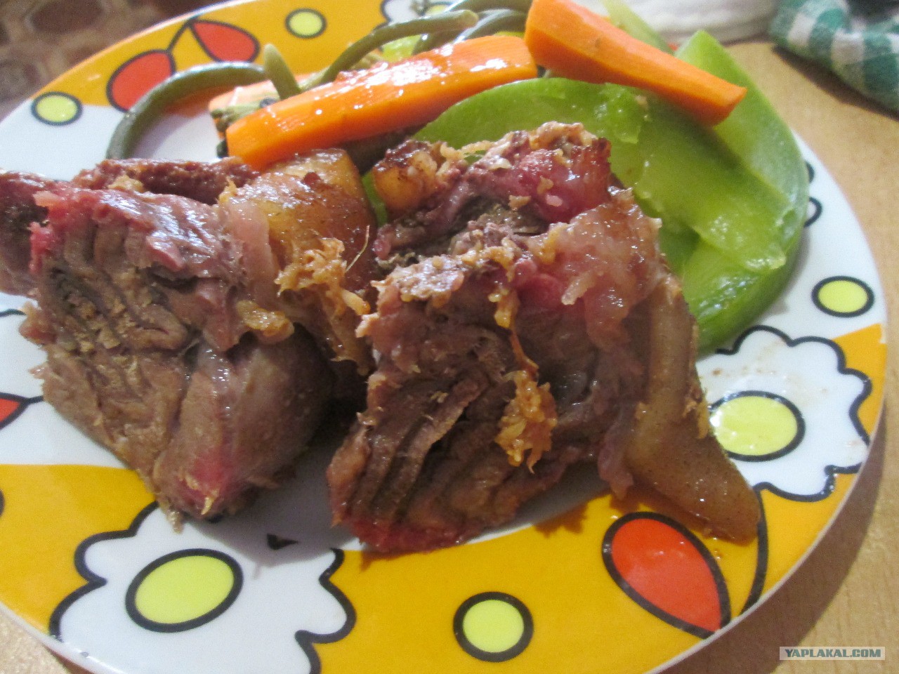Фото самой рульки не покажу, так как за нее ногу подвешивали, я ещё шкуру надрезала, и рулька при запекании расхристалась, некрасиво