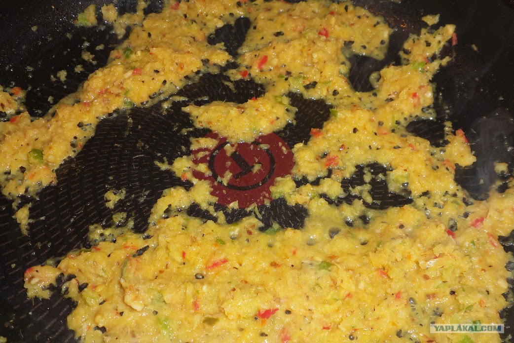 В сковородку налить масло, у меня оливковое на чили, добавить пасту из блендера и специи. Хорошо прогреть на большом огне, а потом минут 15 на среднем, постоянно помешивая.