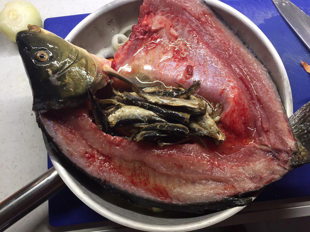 Ну из брюшек карасей они вывалились у тебя или внутри остались?