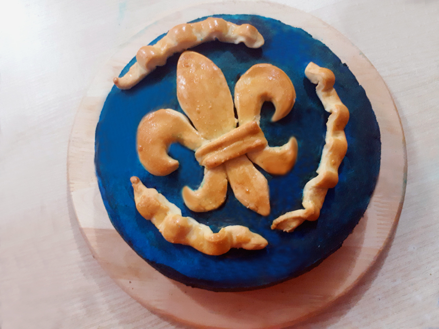Добавляю украшение в виде королевской лилии , закрывая отверстия. Через пару часов паштет в тесте готов.