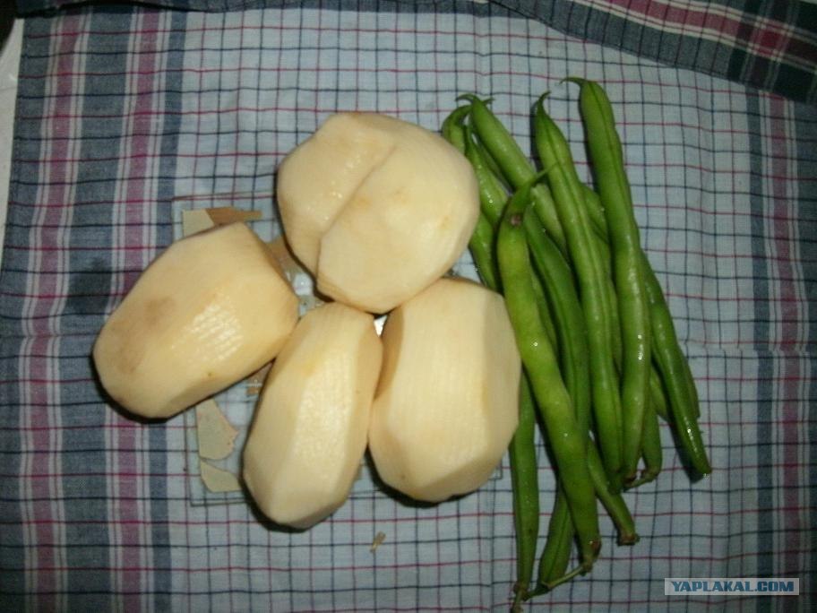 Фасоль (в не кадра зеленая-"припущеная"-в кипятке замоченая.)