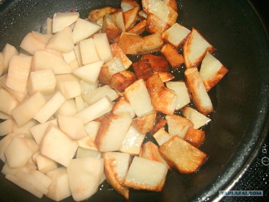 Добавлено в 18:46 sselecaf46ru Картошка кубиками. И каждую штучку переворачиваю отдельно. Немножко муторно. Но, каждый кубик, зажаристый. И на сковороду выкладывать по немножку. Часть обжарилась, другую партию выкладываю. И масло не горит, и не хуже фритюрнице.