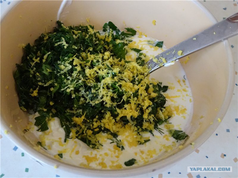 Зелень накрошила, цедру натерла, добавила к сметане с творогом
