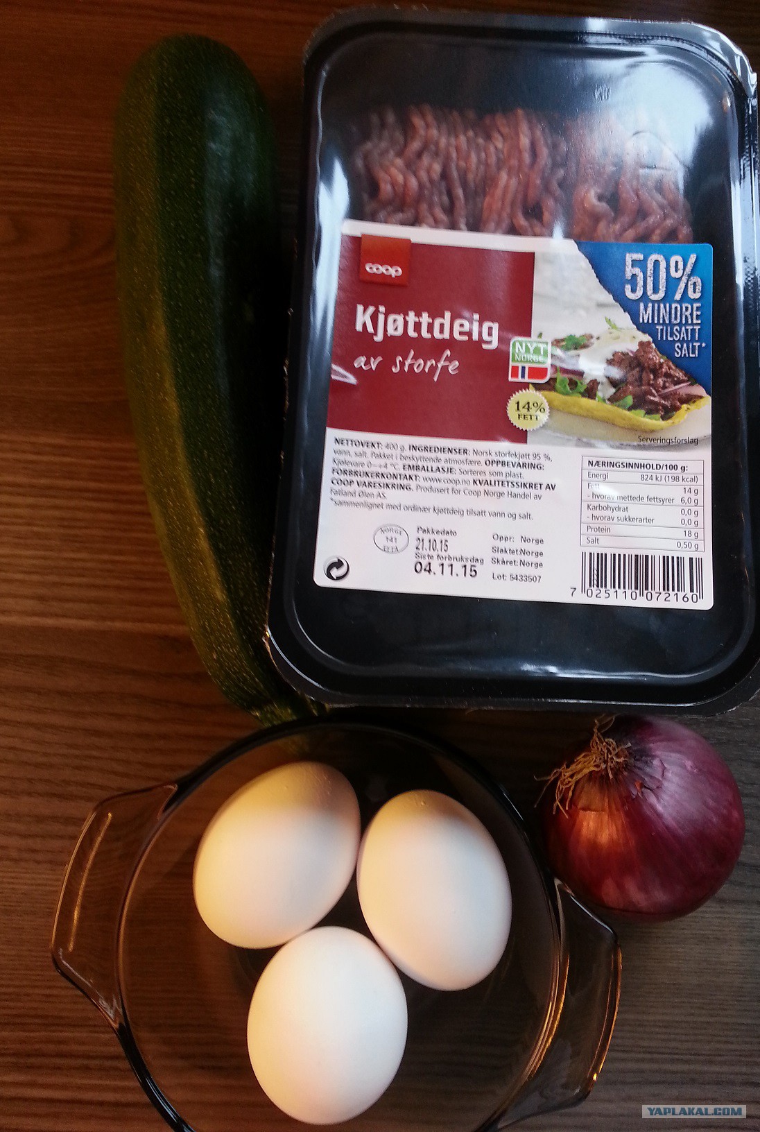 Нам понадобится фарш говяжий (со свиным или куриным фаршем пудинг выходит суховатым, поэтому, перепробовав разные варианты, остановилась на говяжьем, без примесей свиного , куриного или бараньего. Бараний не пошел, потому что муж не любит бараньи котлеты, а бараньи ребра и стейки ест с удовольствием), 800 граммов, 1 кабачок, 3 яйца, луковица, соль, перец, молотый мускатный орех и кориандр, а также масла сливочного пару — тройку . Если вы не любитель муската — не беда. В некоторых случаях я лук не кладу в пудинг. Это на вкус. Что делать, если нет кабачка? Я тру морковь - две на мелкой терке и мешаю с фаршем. Иногда тру редьку, если есть. Могу кольраби натереть для нежности. Все варианты по-своему вкусны.