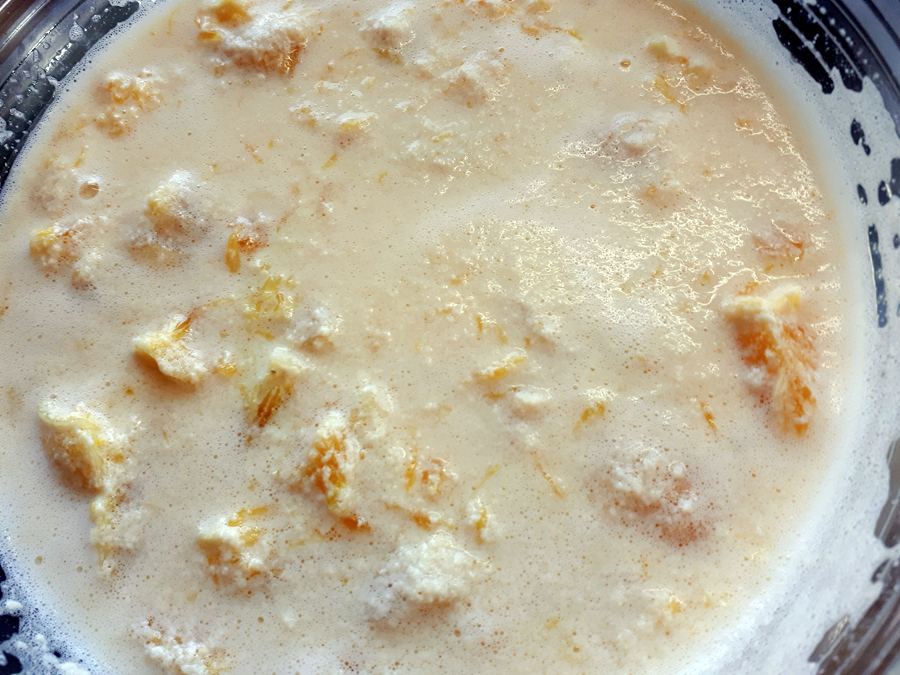 Охлаждаю и добавляю мякоть апельсинов.